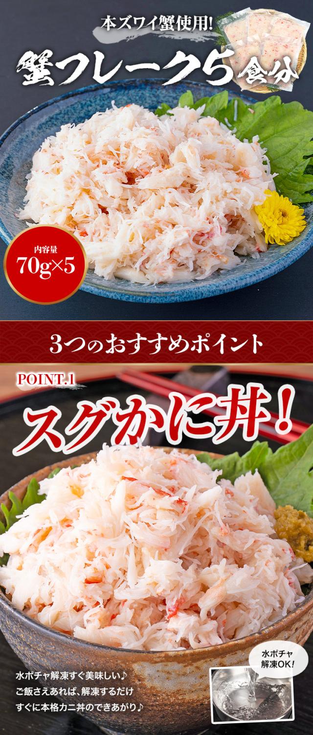 本ズワイガニ フレーク 350g かに丼 70gx5 個包装 送料無料 水ポチャ解凍 すぐ美味しい ボイル済み ほぐし身 蟹丼 5人前 かに 蟹 カニ丼 グルメ 食品 ギフト 海鮮 ギフト プレゼント