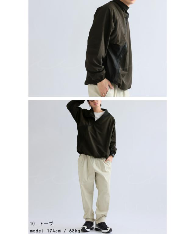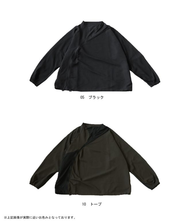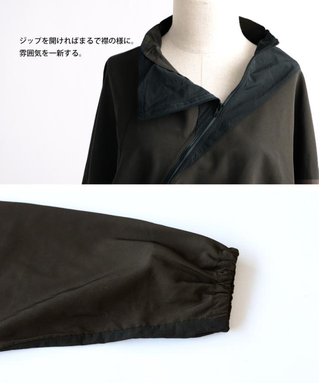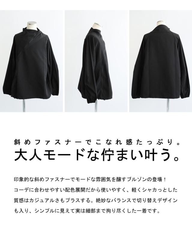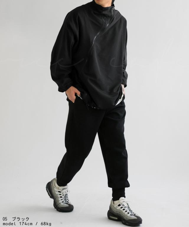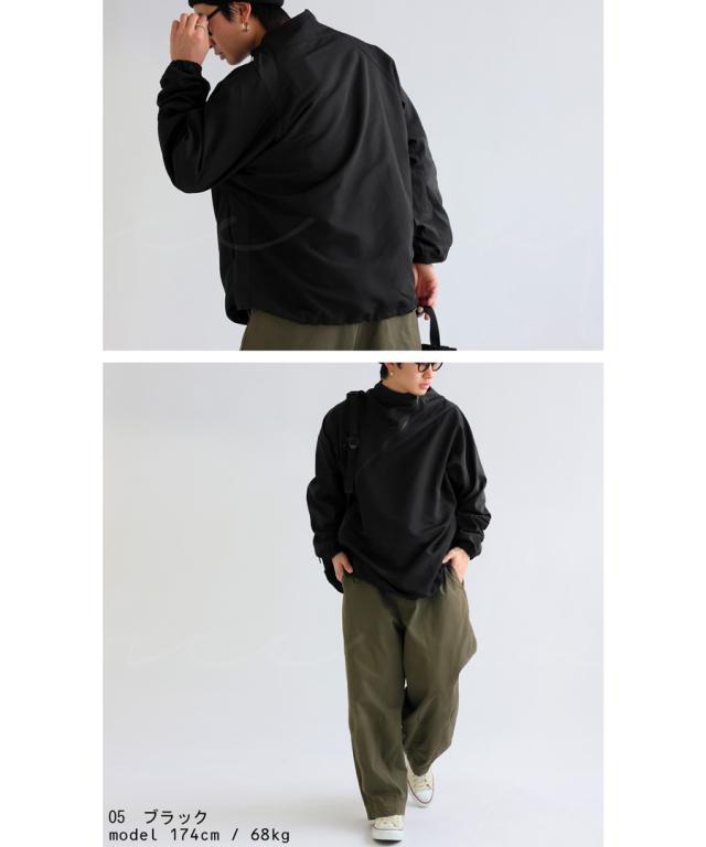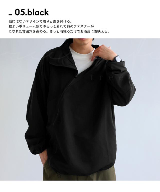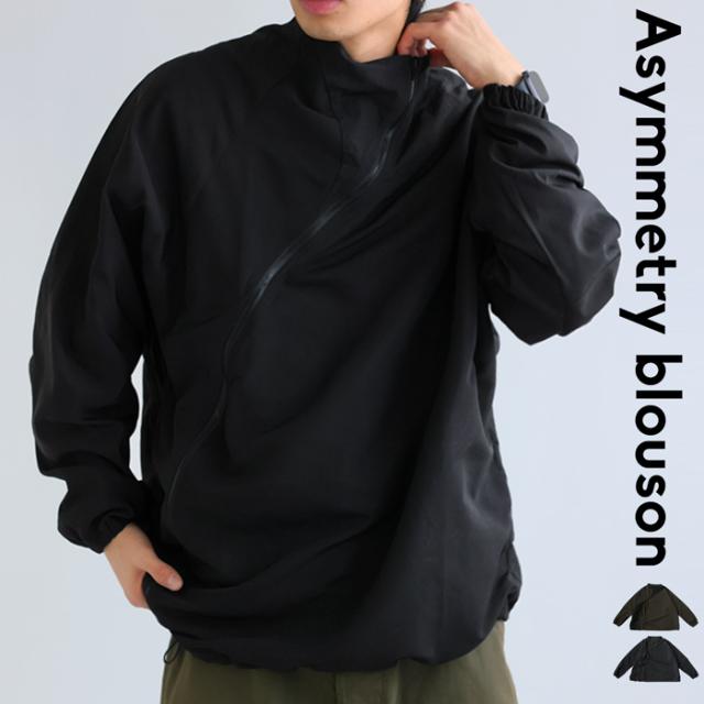 zk-00131z 長袖 無地 配色 ハイネック ジャケット きれいめ シャカシャカ ジップアップ アシメ 変形 斜め ファスナー ライトアウター モード 軽量 大きめ スポーティー ユニセックス