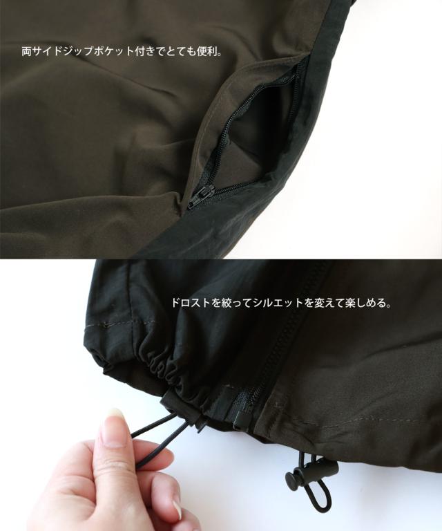・裾のドロストを絞って好きなシルエットに変えられる。