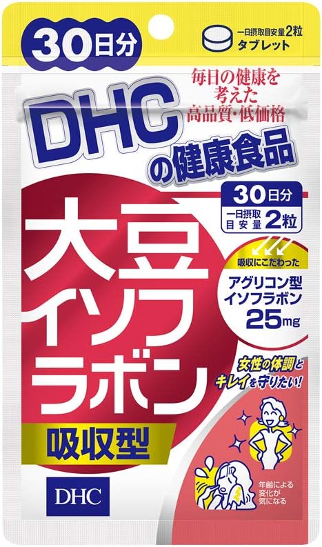 商品紹介 毎日ハツラツ、すこやかに。 中高年期の女性、毎月のリズムをサポート 『大豆イソフラボン 吸収型*』は、吸収に優れた*アグリコン型の[大豆イソフラボン]を1日摂取目安量あたり25mg配合したサプリメントです。サポート成分[ラクトビオン酸]も配合し、イソフラボンのはたらきを追及した処方にしました。さらに、中高年期の女性のゆらぎがちなリズムにうれしい[ホップエキス][アマニ抽出物]、女性の健康に関わる[ビタミンD][葉酸]もプラスして、健やかな毎日をサポートします。 飲みやすいタブレットで、毎日手軽にお摂りいただけます。 *アグリコン型を使用。グリコシド型との比較において。