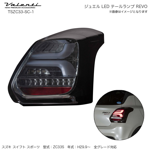 ヴァレンティ/Valenti ジュエル LED テールランプ REVO スイフトスポーツ (ZC33S) ライトスモーク/クローム シーケンシャル TSZC33-SC-1