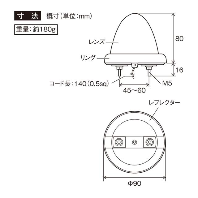 ・推奨使用電球 : DC24V/BA15s 12W1個(DC12Vで使用する場合は推奨BA15s 6W )