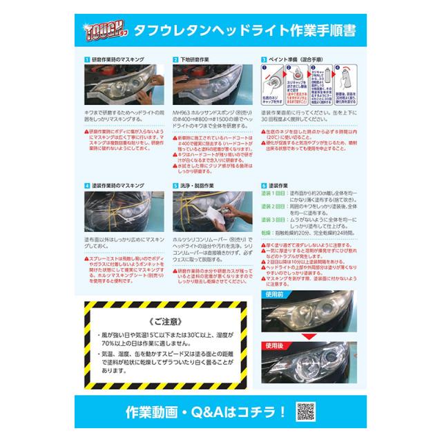 耐候性・耐ガソリン性・耐衝撃性に優れたヘッドライト専用の2液性ウレタンクリア塗料。