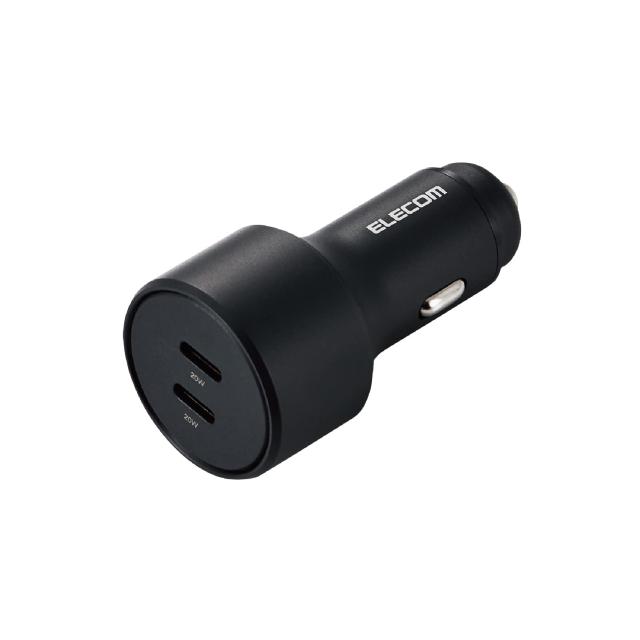 エレコム カーチャージャー シガーソケット USB-C 最大40W (2ポート合計) USB PD対応 20W USB-C×2 2台同時充電 12V24V対応 [iPhone 14/13/12/11/SE3/SE2、iPad 等対応] ブラック EC-DC09BK