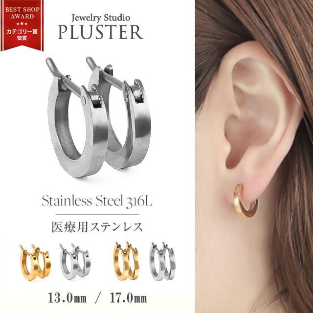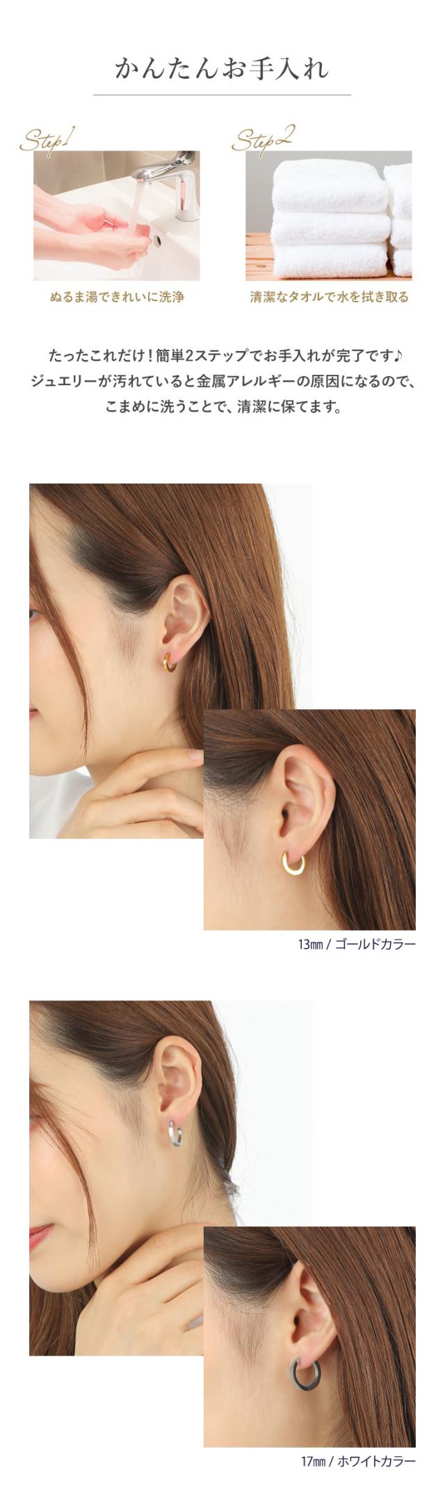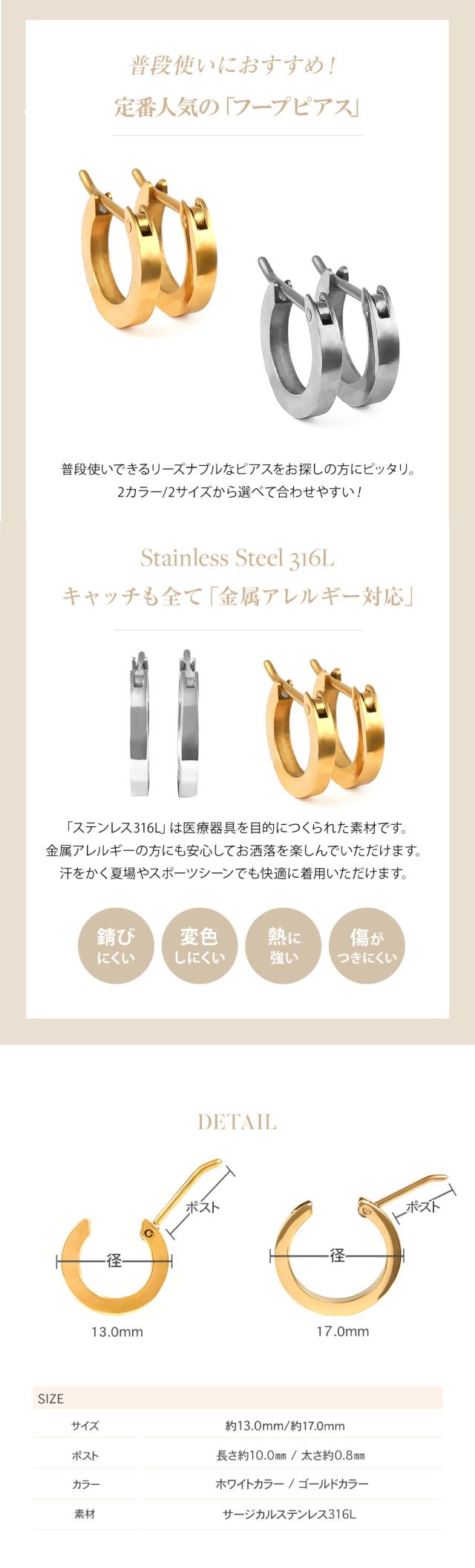 ピアス レディース メンズ フープ リング 13mm 17mm 重ねづけ 金属アレルギー フープピアス シンプル ステンレス サージカルステンレス 医療用 イエロー ホワイト ゴールド キャッチ不要 両耳 アクセサリー リングピアス 小さめ 誕生日 プレゼント 母の日