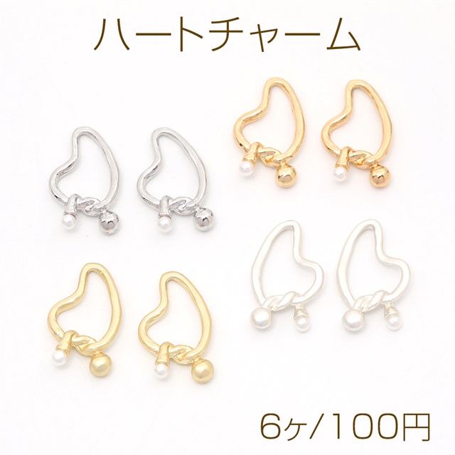ハートチャーム ハートフレームパーツ アンバランスハート パール付き 12×20mm(6ヶ)