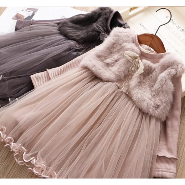 ワンピース キッズ 子供服 女の子 スカート 子供ドレス シフォン ファー 裏起毛 長袖 発表会 結婚式 七五三 入園入学 卒園卒業 送料無料