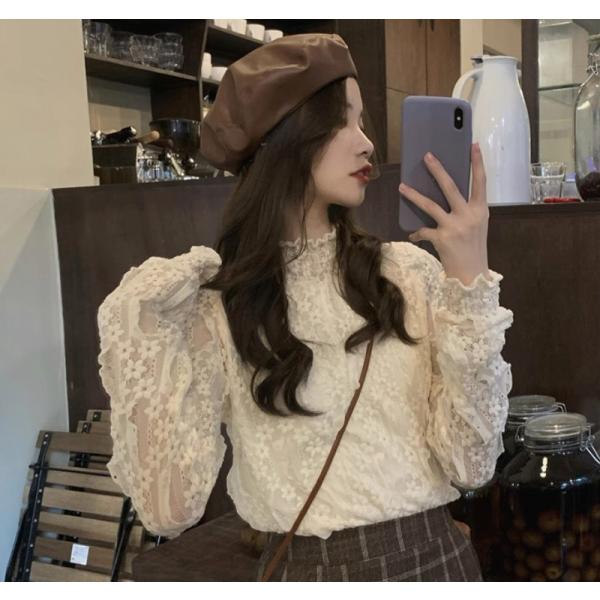 トップス レディース シアートップス ハイネック ニット プルオーバー 重ね着 透け感 フラワーモチーフ 花柄 トレンド 長袖 カットソー ハーフネック 秋冬 人気 肌魅せ 韓国ファッション