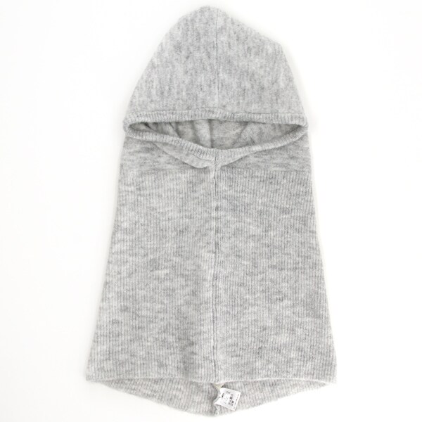 メランジニットの薄手フードネックウォーマー(バラクラバ)ソフトタッチで肌ざわり良い素材感です。またテンションのあるニットなので肩まですっぽり被ってケープのようにも着こなせます。