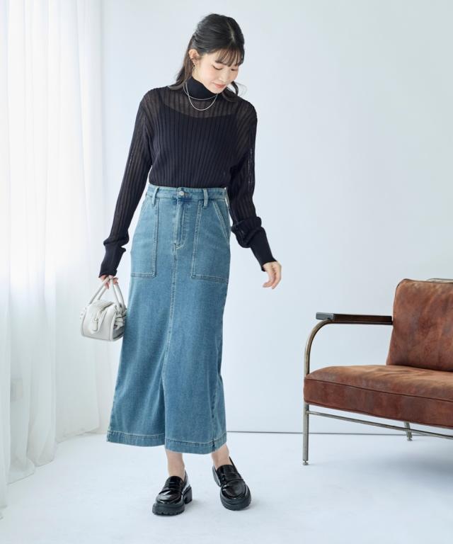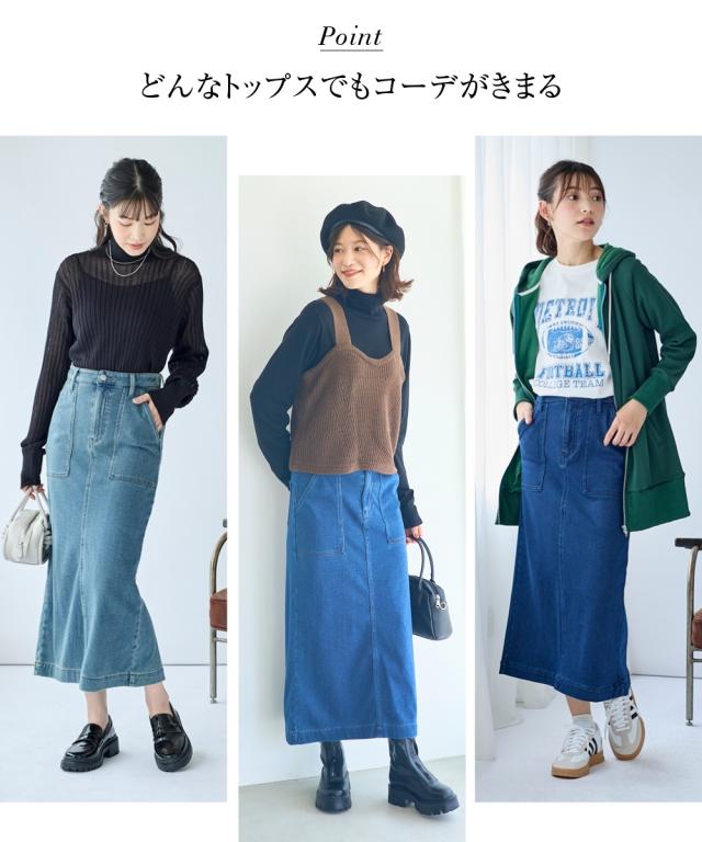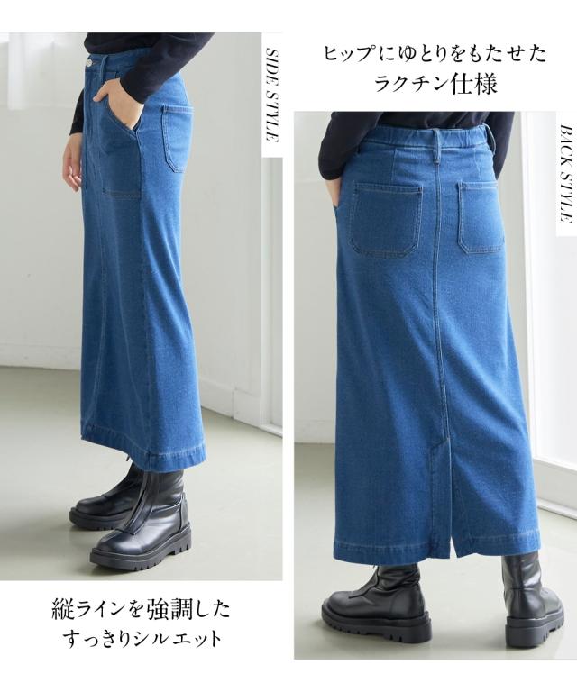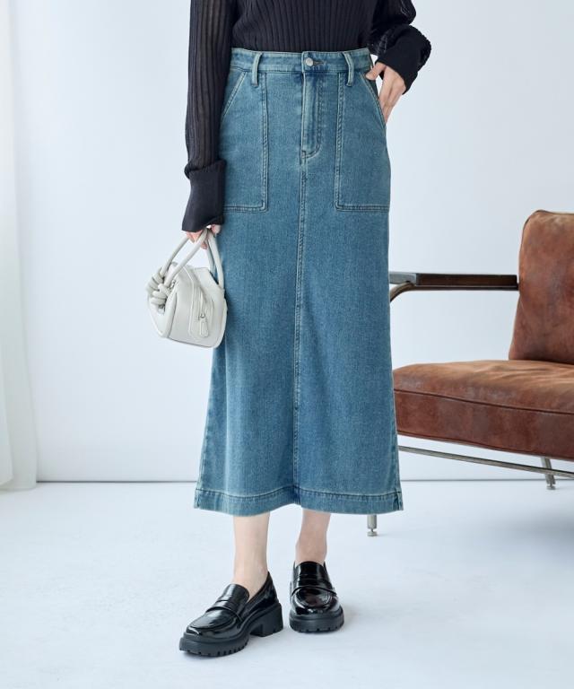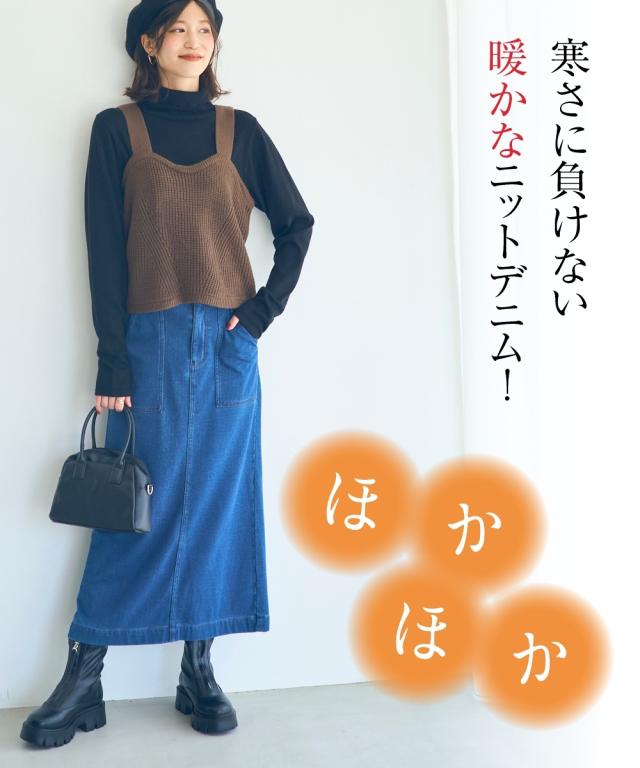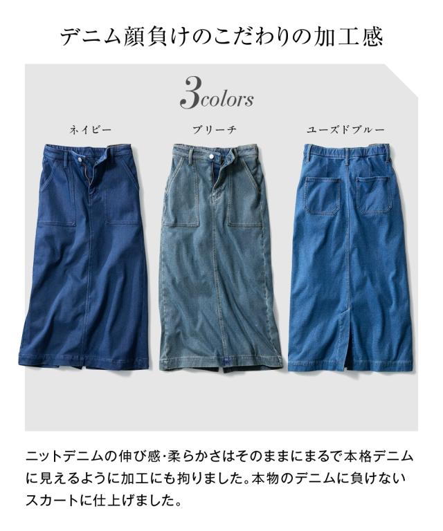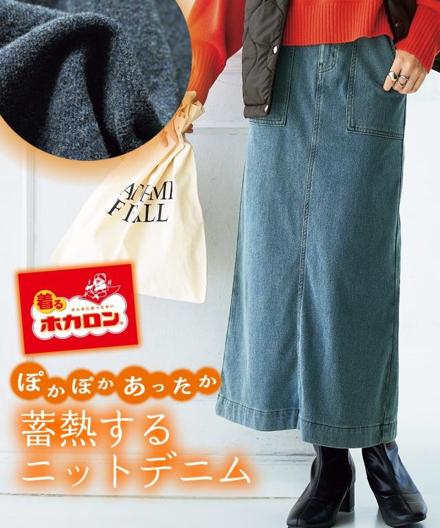 大きいサイズ 【蓄熱・保温】ストレッチニットデニムスカート(ゆったりヒップ)