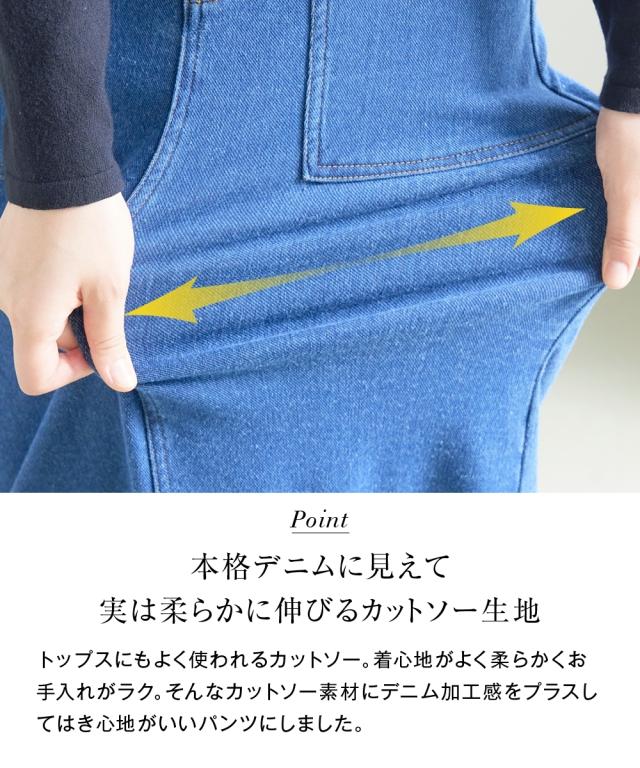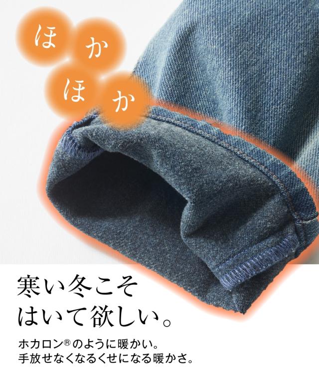 寒い冬こそ履きたい新感覚のニットデニム!!まるでカイロみたいなんと!あのホカロンがボトムスになりました!冬一押しボトムを是非肌で感じてください!!!!■デザインラクチンでサマになるスリムなシルエット!ヒップはゆったりで穿きやすい、後スリット入で歩きやすい!お外でもお家でも大活躍間違いなし。前ファスナー開き・ウエスト後ゴム入りで着脱楽々!前側はゴム仕様でなくお腹まわりがスッキリご着用いただけます!■素材デニム見えするニット素材吸湿発熱機能のある裏起毛が「ホカロン」のように暖かさをキープします。伸びの良い素材