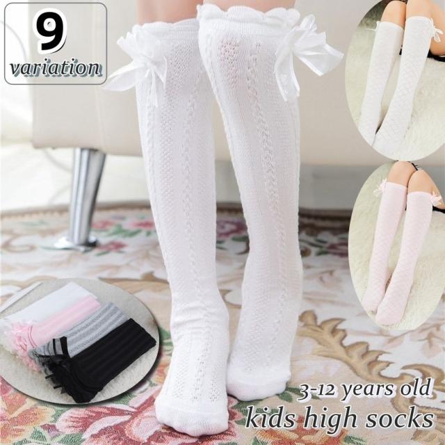 ハイソックス キッズ ジュニア 女の子 女児 子供 ソックス 靴下 くつ下 膝下 膝下丈 ロング リボン シンプル 子ども お出