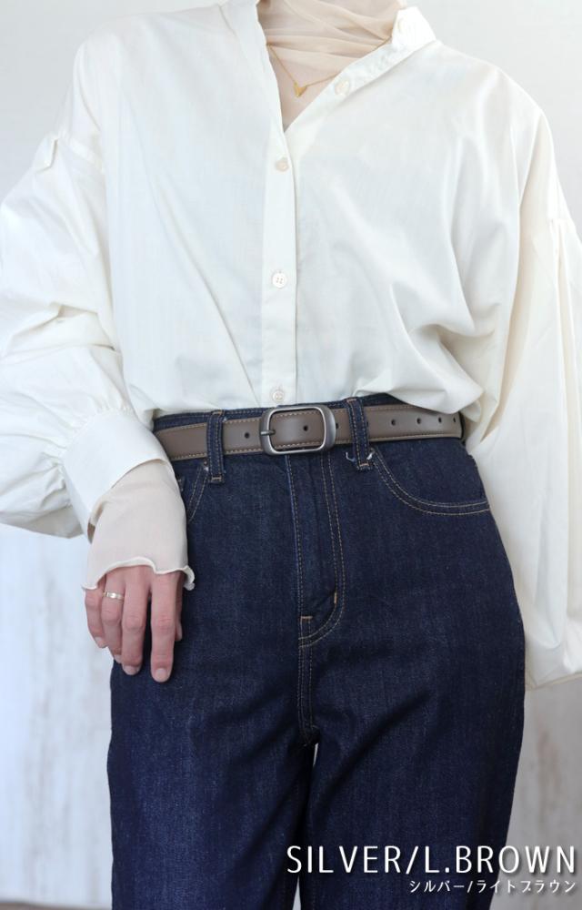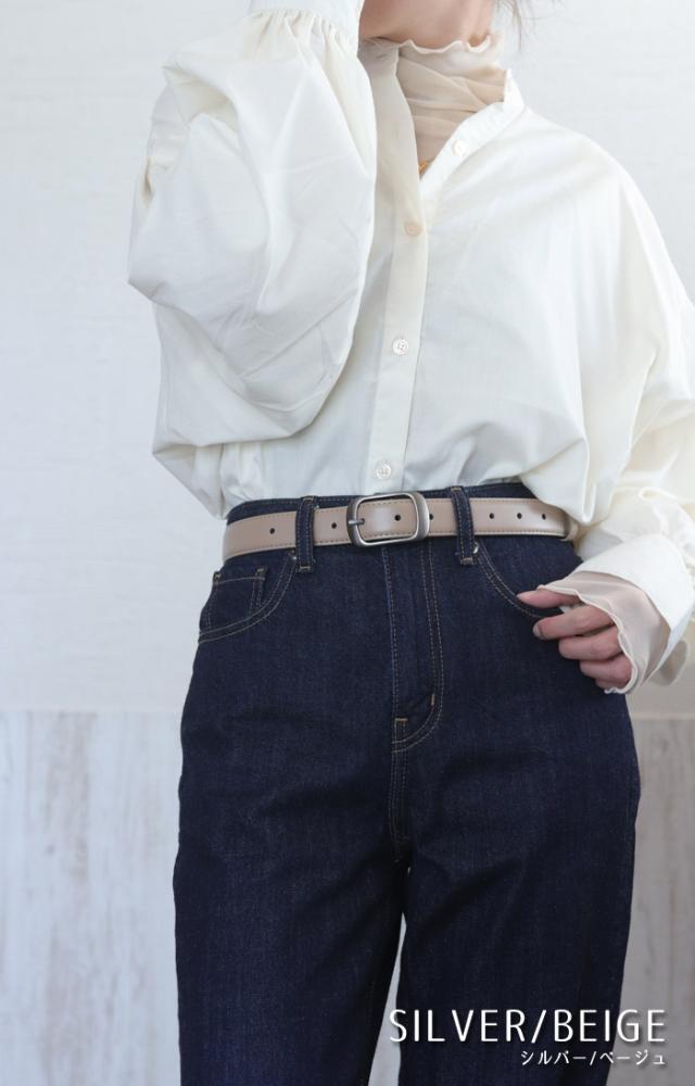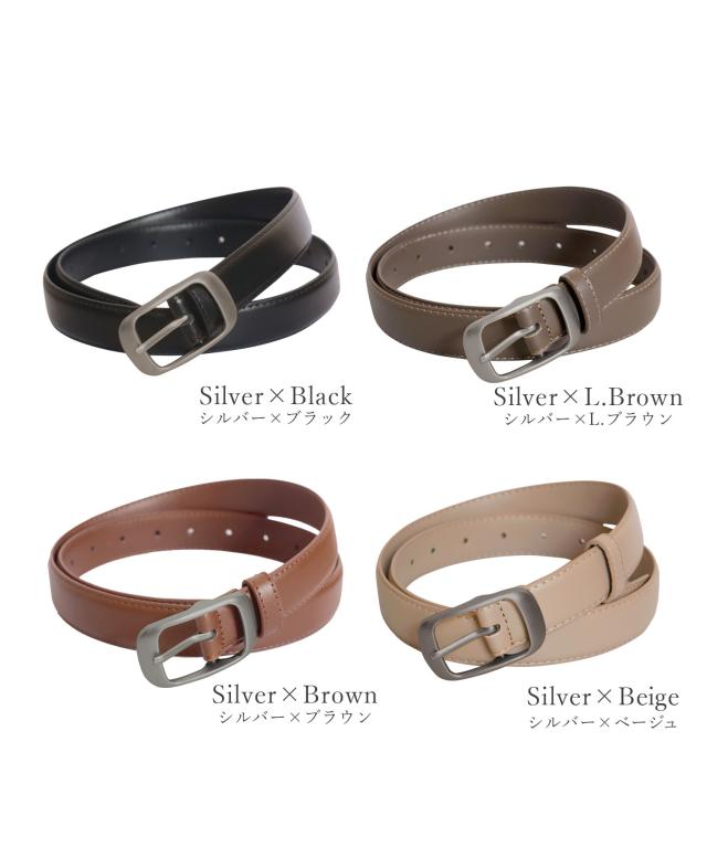 スクエアのシルバーバックルの程よいボリュームと光沢が上品さをプラスしてくれます。