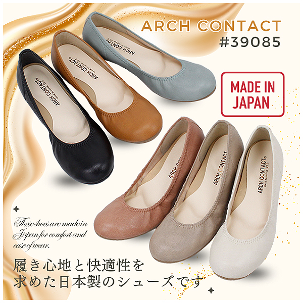 アーチコンタクト 日本製 3cmヒール ラウンドトゥ バレエ ストレッチ ローヒール パンプス 軽量 吸汗 放湿 消臭 抗菌 屈曲性 防滑 撥水 ARCH CONTACT 39085 ぺたんこ 歩きやすい 痛くない 通勤 オフィス シンプル 【レディース】
