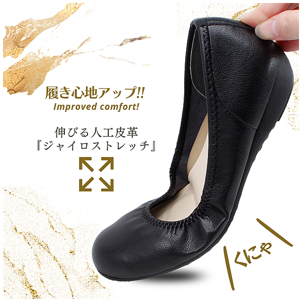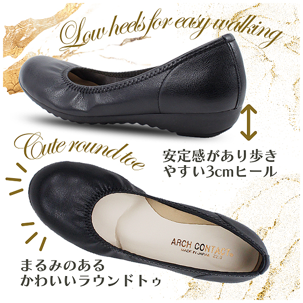 アーチコンタクト 日本製 3cmヒール ラウンドトゥ バレエ ストレッチ ローヒール パンプス 軽量 吸汗 放湿 消臭 抗菌 屈曲性 防滑 撥水 ARCH CONTACT 39085 ぺたんこ 歩きやすい 痛くない 通勤 オフィス シンプル