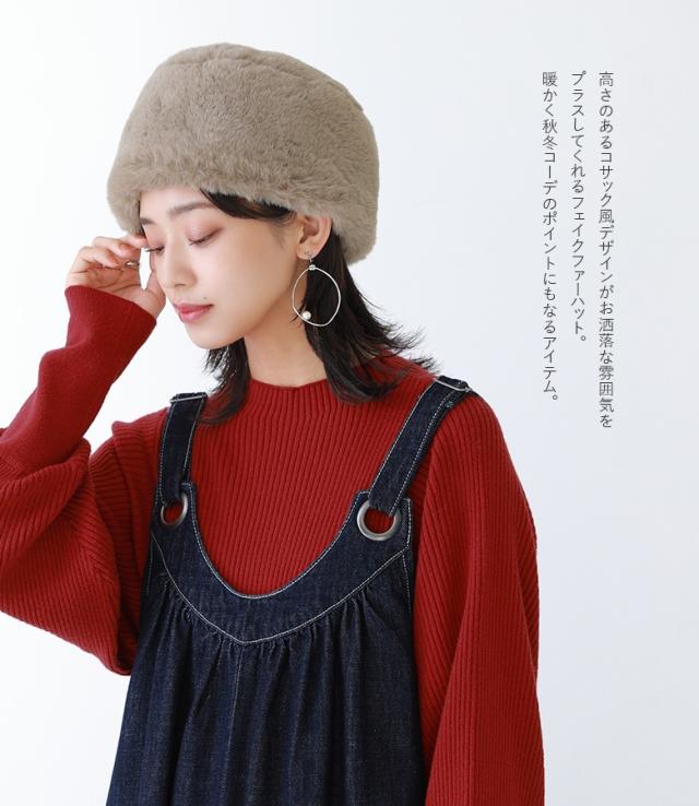 『フェイクファーハット』【メール便不可】【20】[帽子 レディース 秋冬 ファッション雑貨 小物 ハット コサック風 フェイクファー 起毛 あったか ロシア帽風]