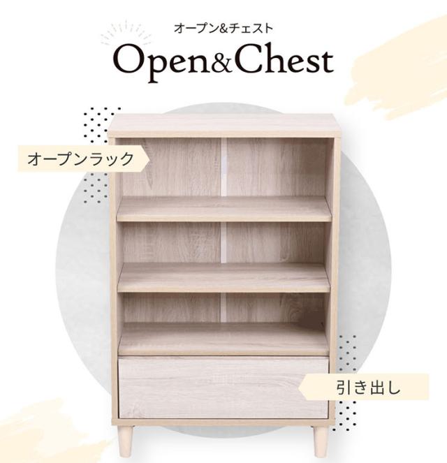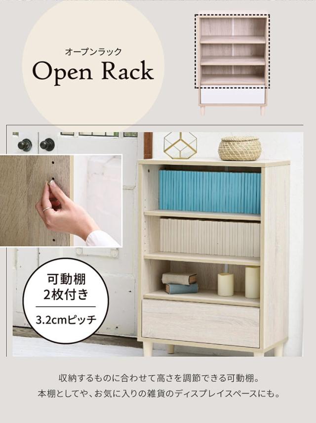 オープンラック オープン&チェストタイプ Adatto 幅60cm 5色対応 ディスプレイラック サイドボード ラック キャビネット リビング収納 収納棚 木製 引き出し 可動棚 本棚 書棚 食器棚 小物収納 おしゃれ