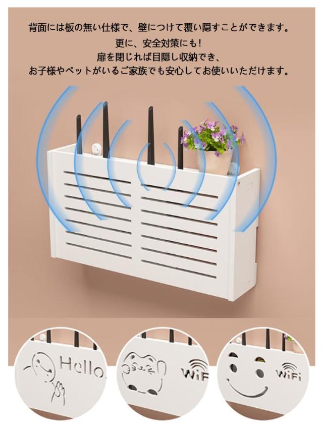 | 優れた耐久性、軽量性を備えた壁掛け式ルーター収納ボックスです。 洗練されたデザインでお部屋に高級感を与えます。 ごちゃごちゃした電源タップやルーターをしっかり収納できます。 背面には板の無い仕様で、壁につけて覆い隠すことができます。 各面に配線を通す穴があり、キレイに設置でき、電波にも影響しません。 ケースの中だけでなく、本体の上もちょっとした飾り棚として使用できます。 更に、安全対策にも! 扉を閉じれば目隠し収納でき、お子様やペットがいるご家族でも安心してお使いいただけます。 お悩みのごちゃごちゃした配線はこれで解決しましょう。 | |