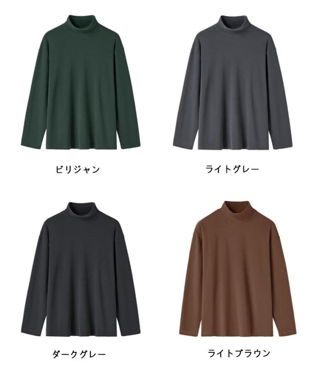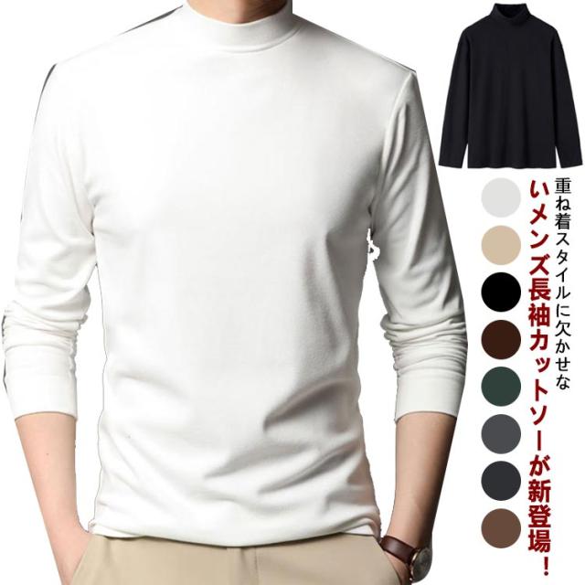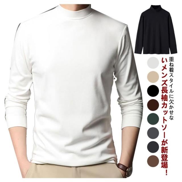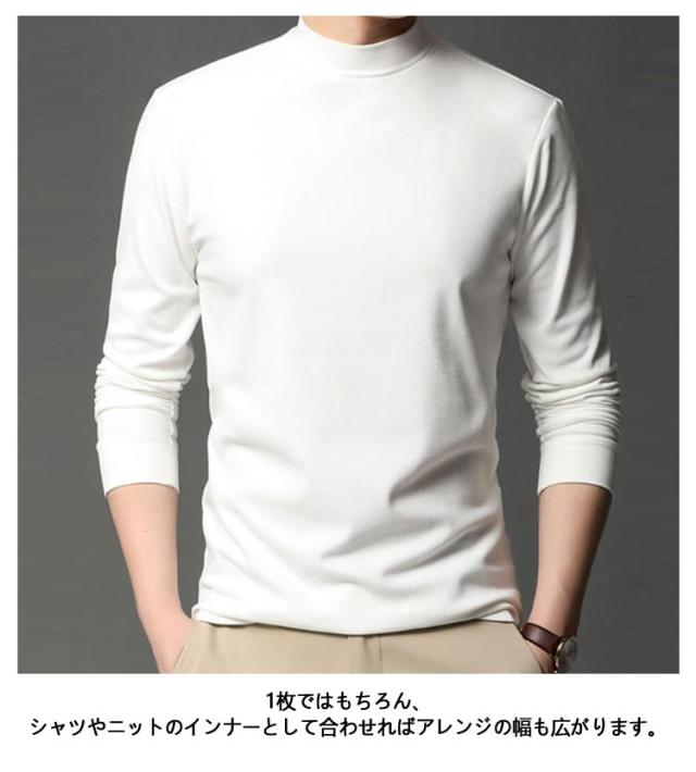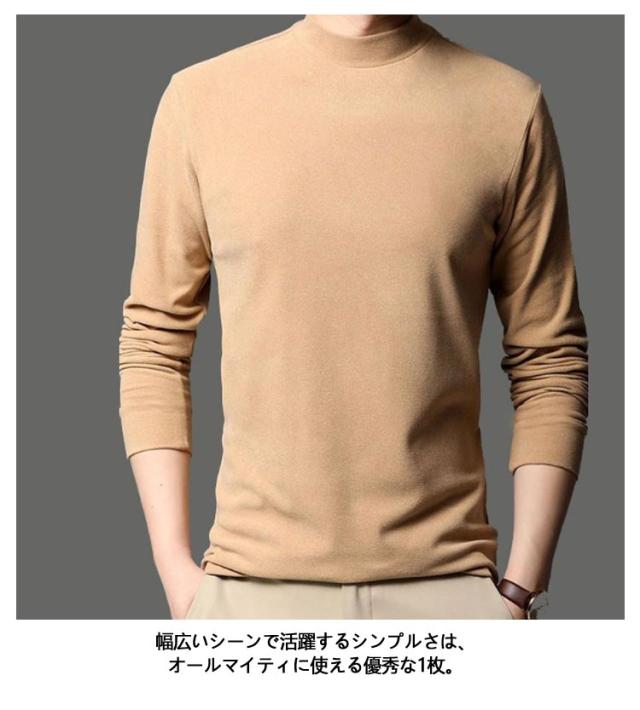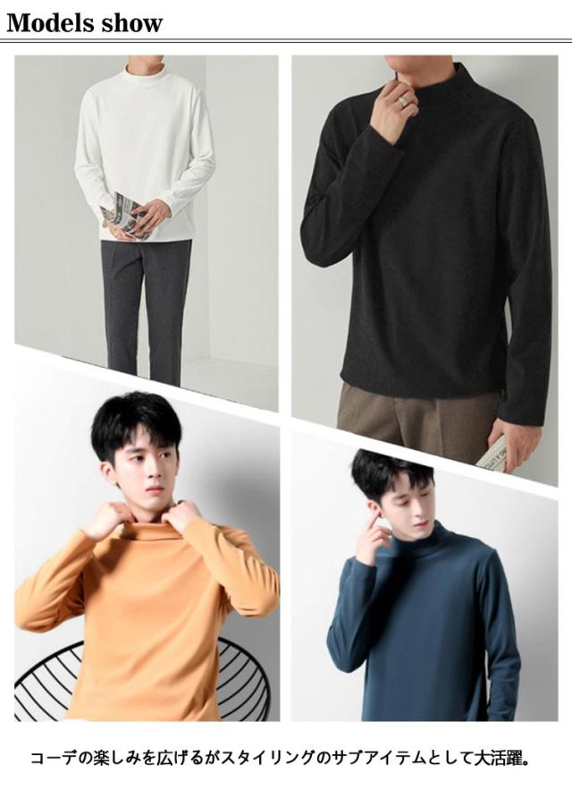長袖 カットソー ハイネック タートルネック 秋 トップス 着心地 メンズ Tシャツ ロンT 微起毛 着心地 インナー 男性 長袖Tシャツ 快適 春 メンズ 冬 あったか 暖かい 柔らか オレンジ オフィス カジュアル シンプル 大人