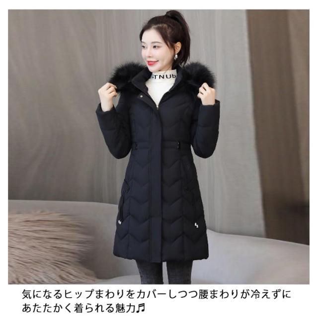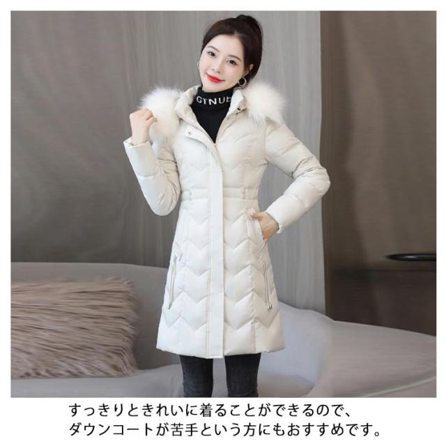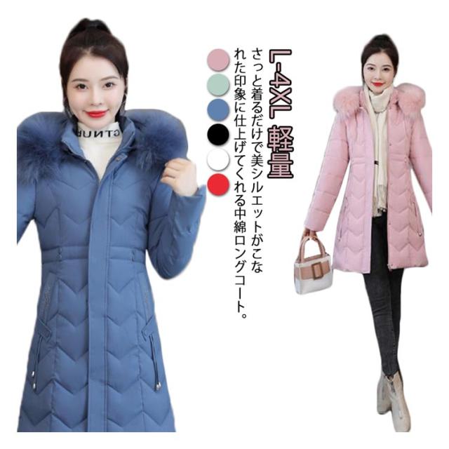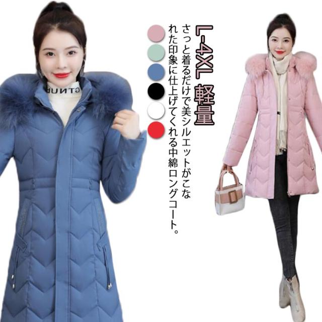 細身 30代 中綿 ファーフード付き レディース 冬コート ロング スリム コート 中綿 ダウンコート アウター ミドル丈 秋冬 ロングコート 軽量 防寒 保温 あたっか 無地 きれいめ 大人 カジュアル 着?せ 40代 50代 大きいサイズ おしゃれ