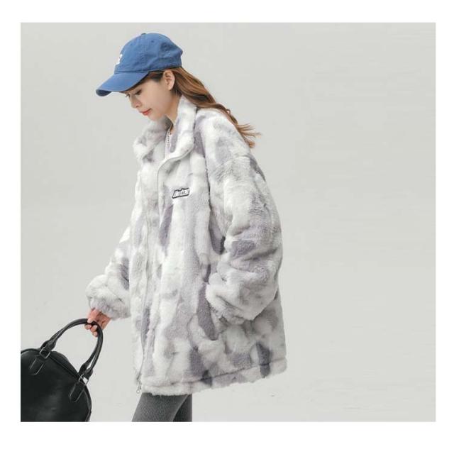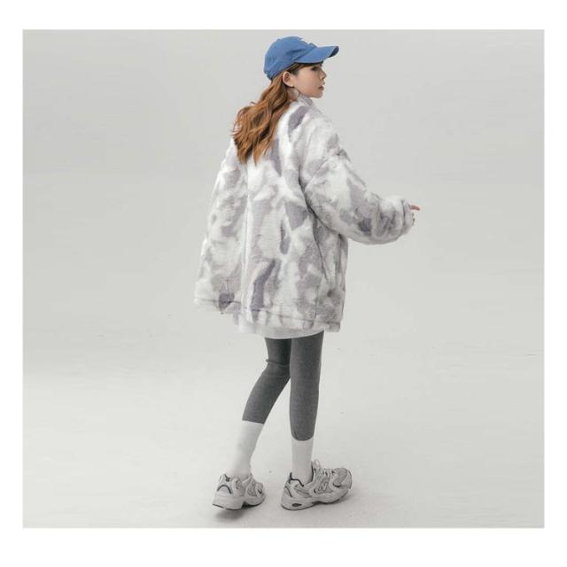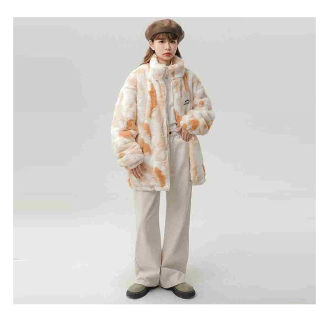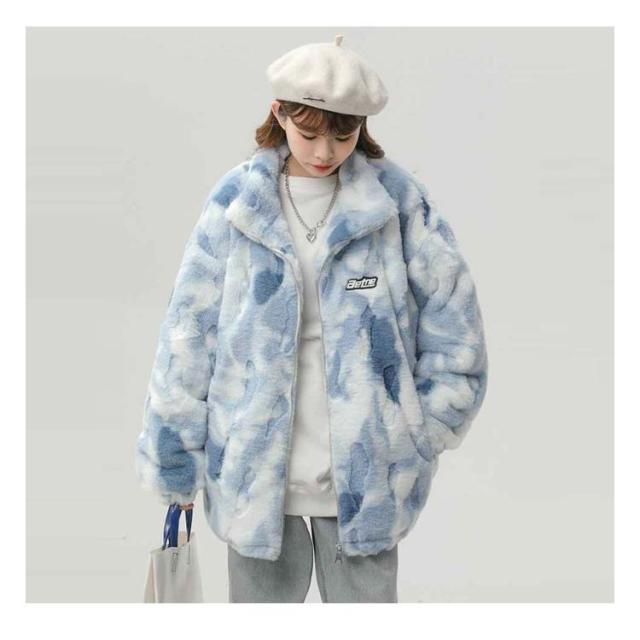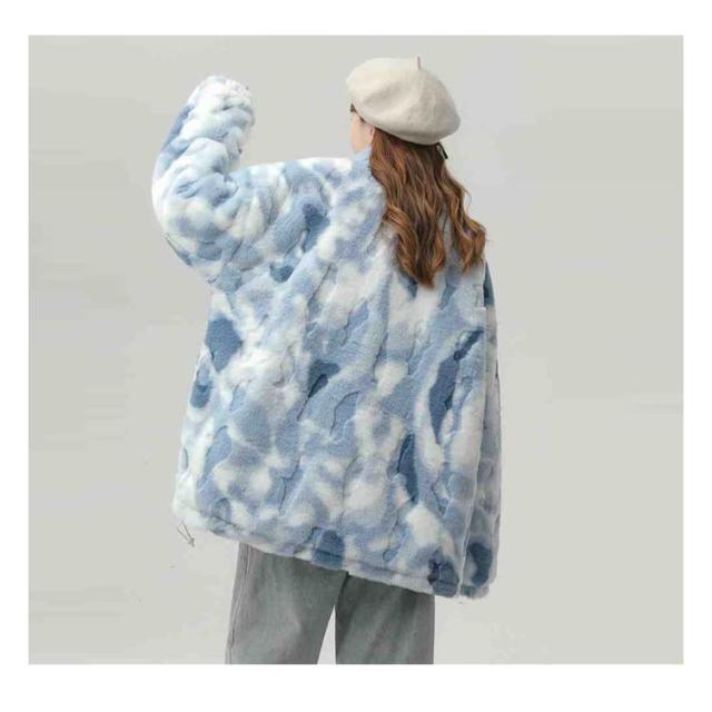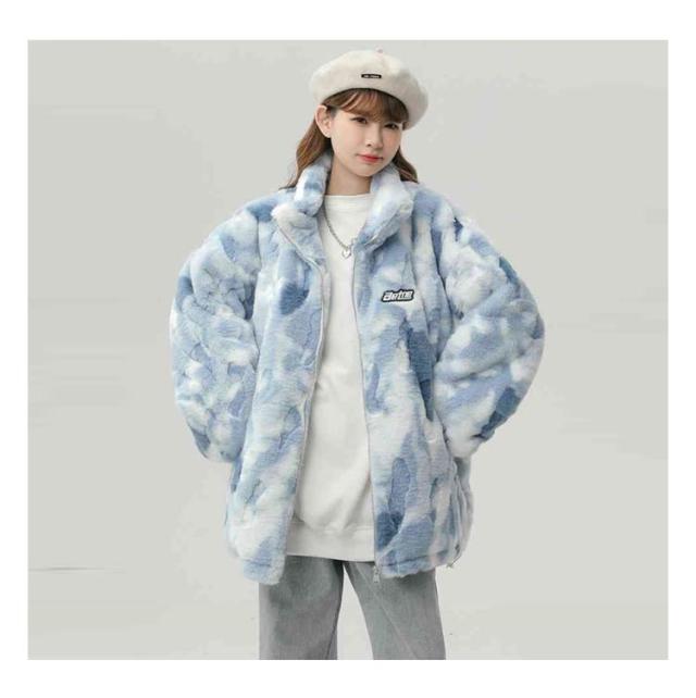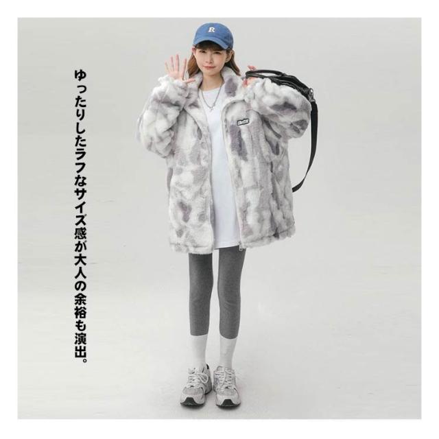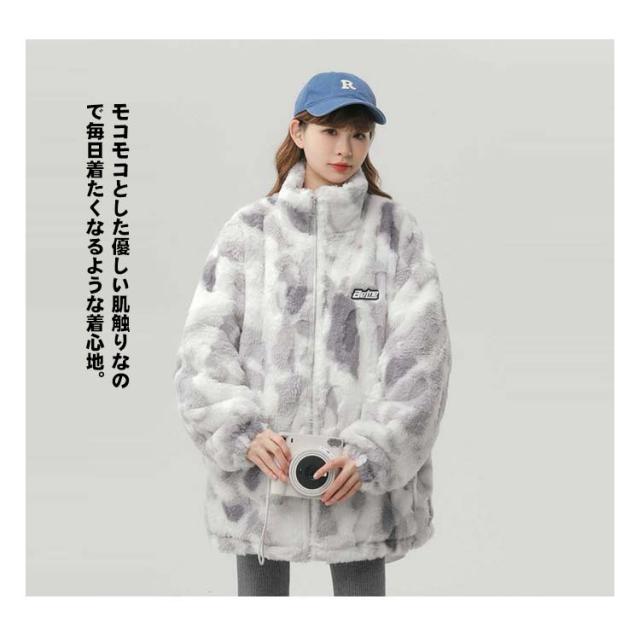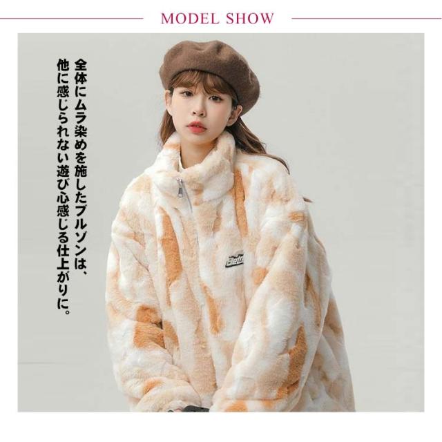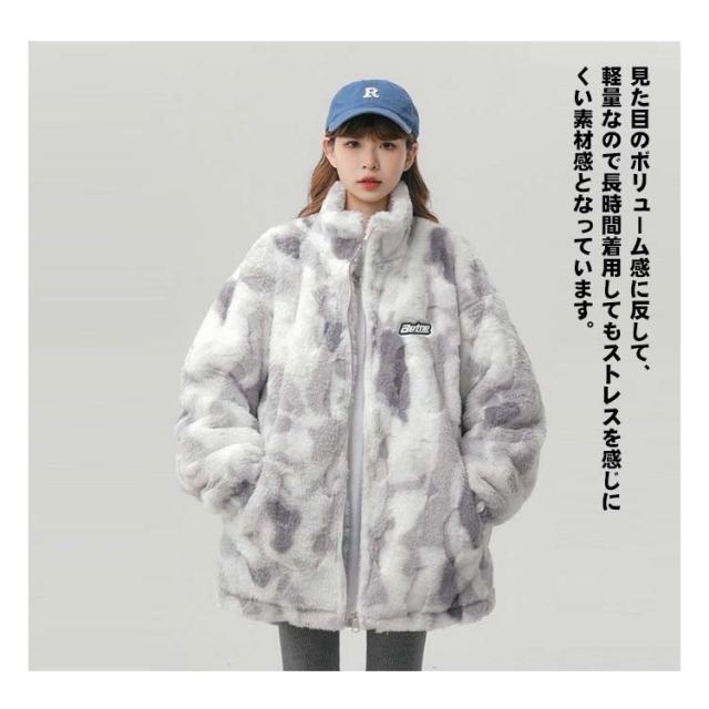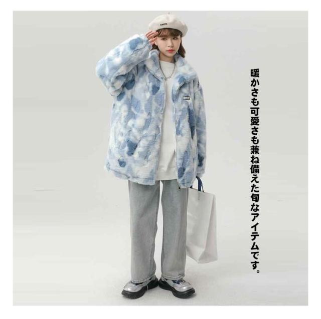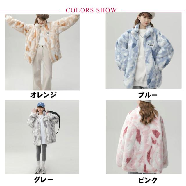 ブルゾン ボアブルゾン スタンドカラー ボアジャケット もこもこ 厚手 オーバーサイズ レディース ふわふわ ボアフリース あたっか タイダイ染め 秋 冬 アウター ジャンパー 冬服 防寒 ボアジャケット 韓国風 学生 カジュアル オレンジ ブルー グレー