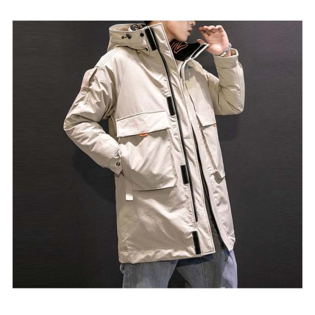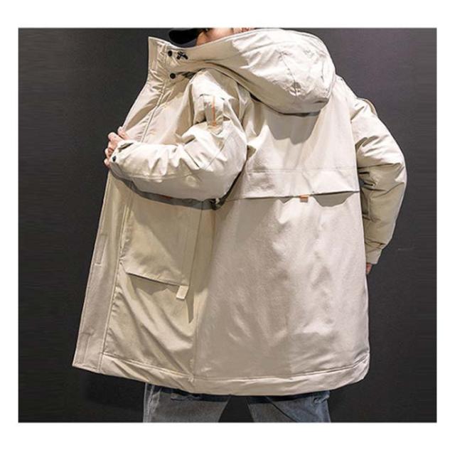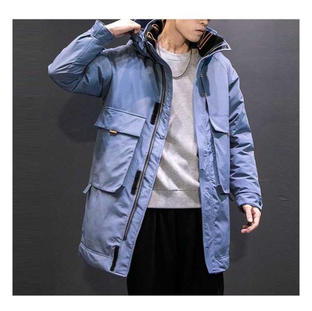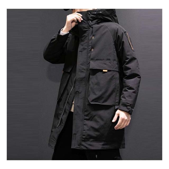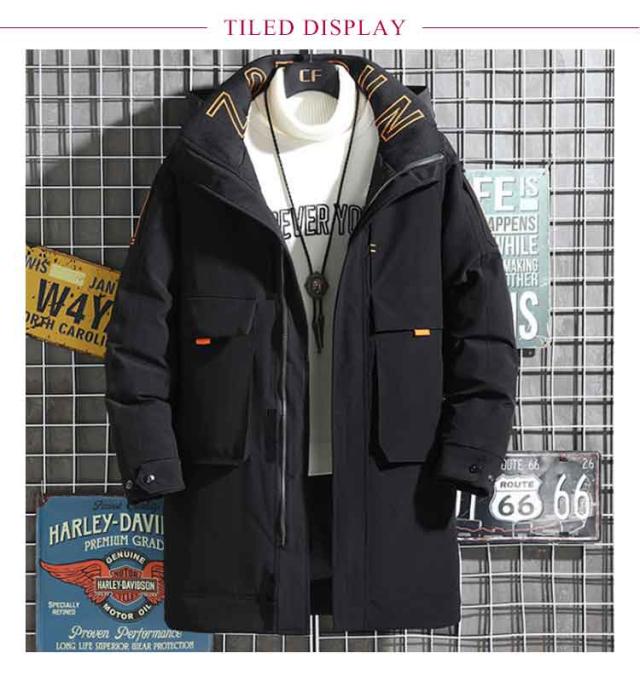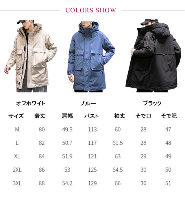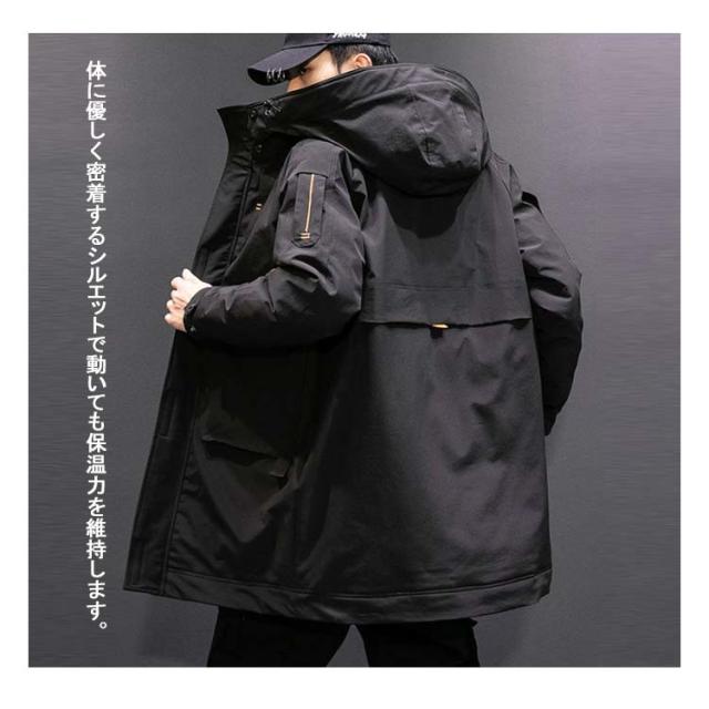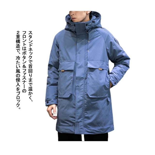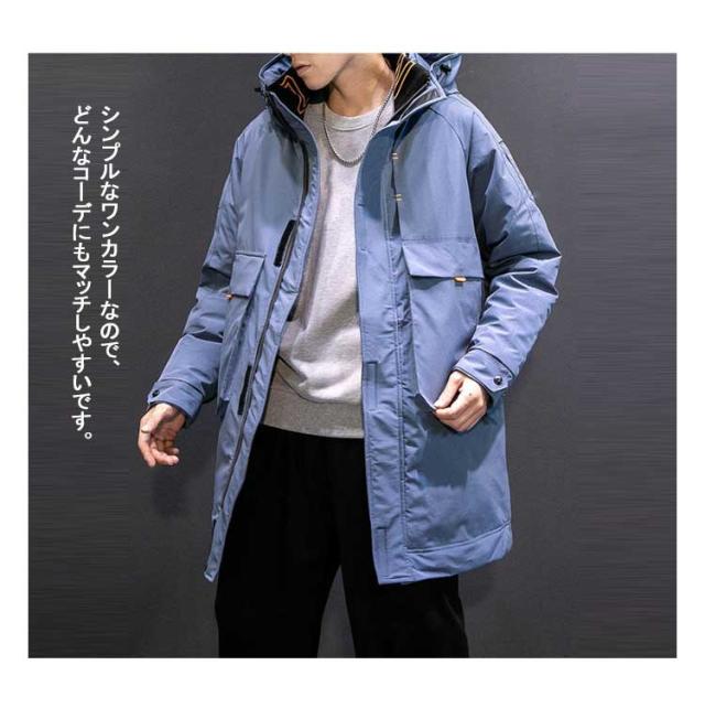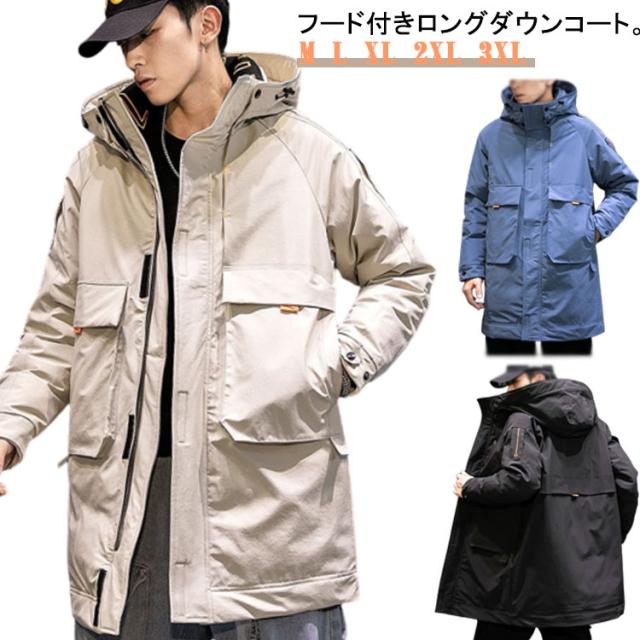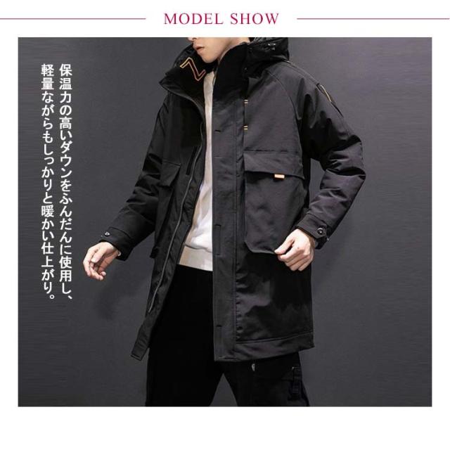 防寒 かっこいい ダウンコート ミリタリー メンズ フード付き ロング丈 アウター 防風 コート ダウンコート 厚手 ダウン 通勤 ハイネック 秋 冬 保温 通学 学生 大人 カジュアル 大きいサイズ L XL 2XL ロングダウン 無地 シンプル 黒