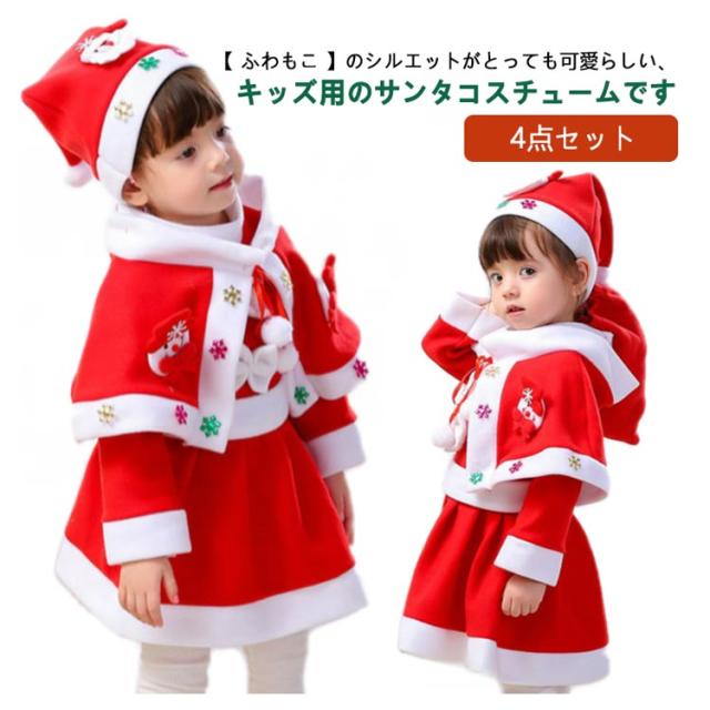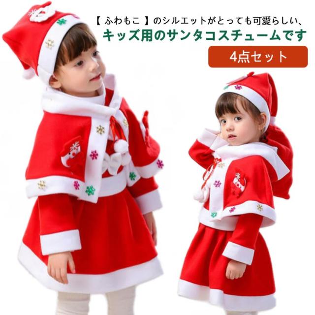 ジュニア サンタ 子供 コスチューム クリスマス プレゼント コスプレ衣装 サンタ服 女の子 キッズ サンタクロース 4点セット マント付き クリスマス衣装 ワンピース 秋冬 子供服 防寒 厚手 コスプレ 帽子付き ギフト サンタ 演出服