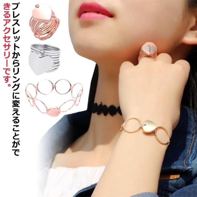 指輪 レディース 2in1 2in1 ブレスレット 伸縮調整可能 折りたたみ式 シンプル 可愛い ハート型 アクセサリー 誕生日 プレゼント 記念日 クリスマス