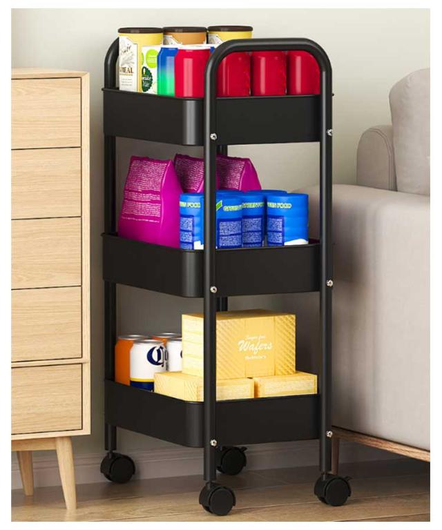 | 頑丈なスチール製で変形しにくく、しっかり支えるので安心 キッチンのすき間スペースなども有効的に活用できます 移動もスムーズなキャスター付き | |