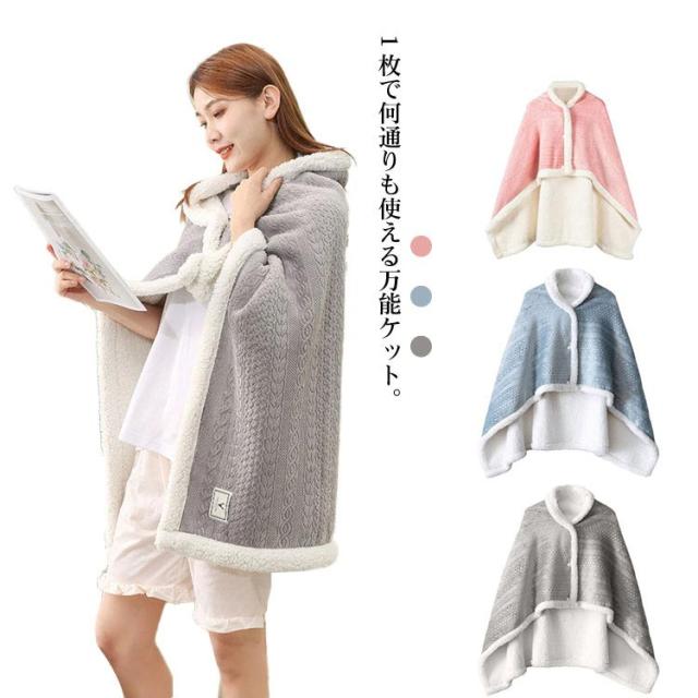 レディース ひざ掛け ブランケット ルームウェア 肩掛け ポンチョ 毛布 ショート 裏起毛 肩掛け ボタン付き ふわふわ 膝かけ 防寒 オシャレ 冬 着る毛布 厚手 大判 羽織る あったか 暖かい 冷え対策