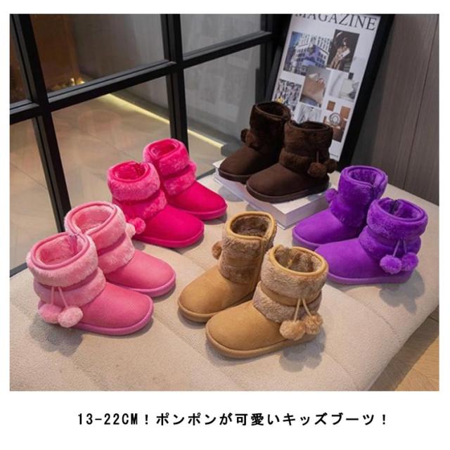 | 13-22cm!ポンポンが可愛いキッズブーツ! ジップアップタイプなのでお子様が自分で楽に履けます。 ふかふかのファーがぎっしり詰まっているので保温性バツグン 滑り止めがしっかりしているので外遊びにもおすすめです。 屈曲性に優れている柔らかアウトソールが足の負担を軽減します | |