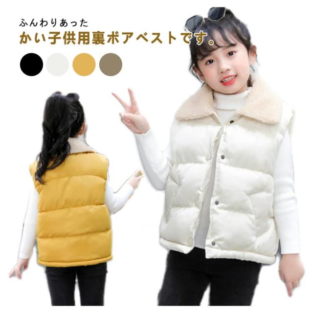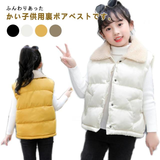 子供用 ボアベスト アウトドア ジュニア 女の子 防寒 アウター 裏起毛 男の子 カジュアル 前開き ボアコート 中綿ベスト シンプル ナチュラル あったかい 上着 中綿ベスト 保温 暖かい 寒さ対策 保育園 小学校 90 100 110 120 130 140