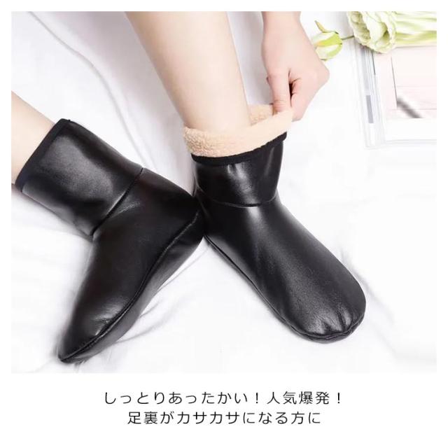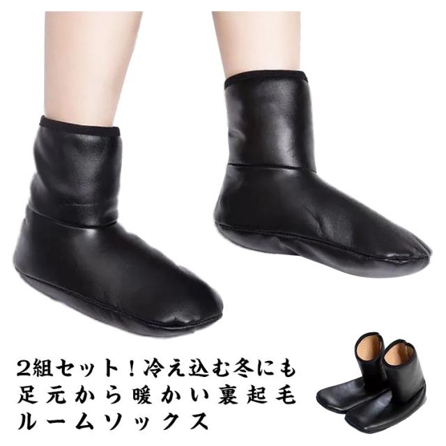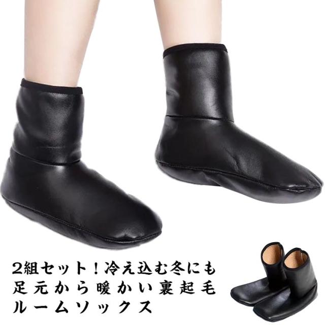 ルームシューズ 2組セット レディース 2組セット メンズ くつした フットウォーマー ルームウェア 裏ボア ルームソックス 発熱 冷え取り 滑り止め 靴下 あったか スリッパ 靴下 秋冬 室内履き レザー 防寒 起毛 ふわふわ おしゃれ お洒落 寒さ対策