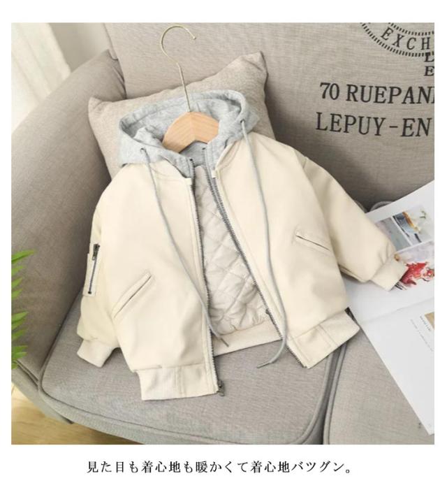 皮ジャン アウター 中綿入り 女の子 革ジャン レザー 子供 80 男の子 ジャケット フェイクレイヤード 革ジャケット おしゃれ かっこいい フェイクレイヤード 90 100 110 120 130