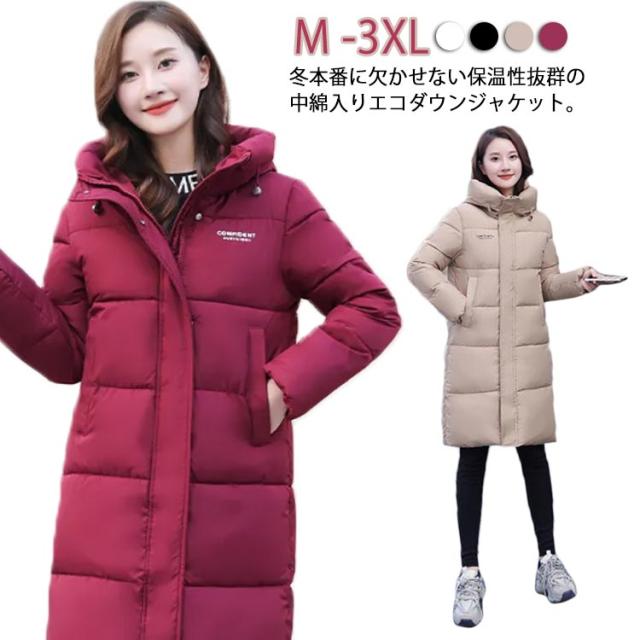 中綿コート 軽量 ファイバー コート あたっか レディース フード付き ゆったり 冬コート ロング ロングコート 厚手 ボリューム 体型カバー 秋冬 アウター 防寒 保温 ダウンコート ハイネック 無地 大人 カジュアル 学生 韓国風 大きいサイズ