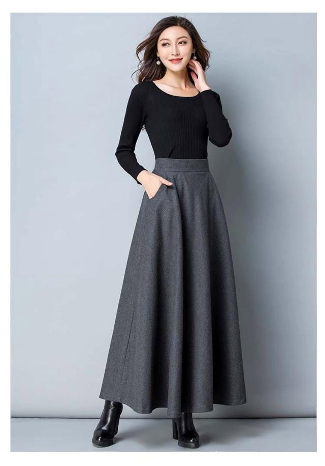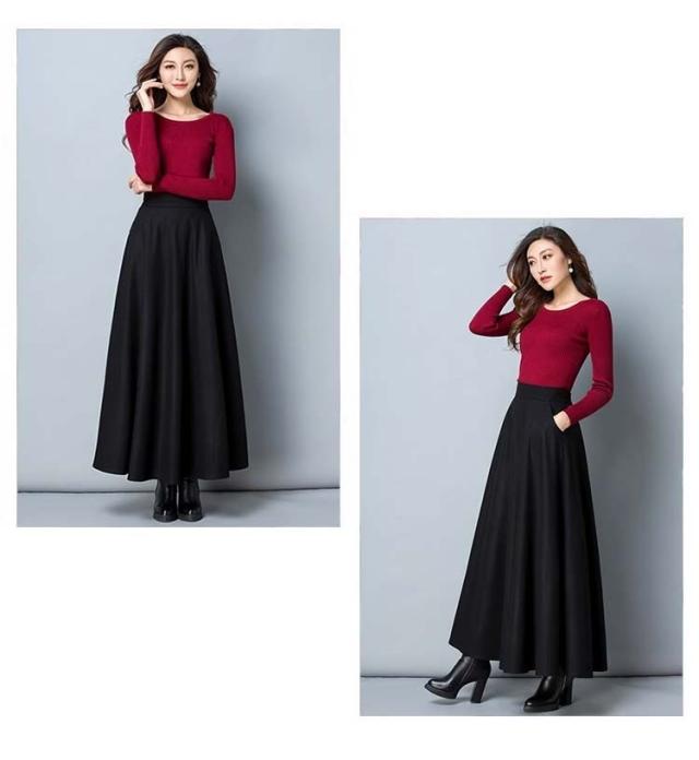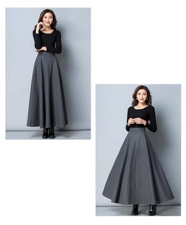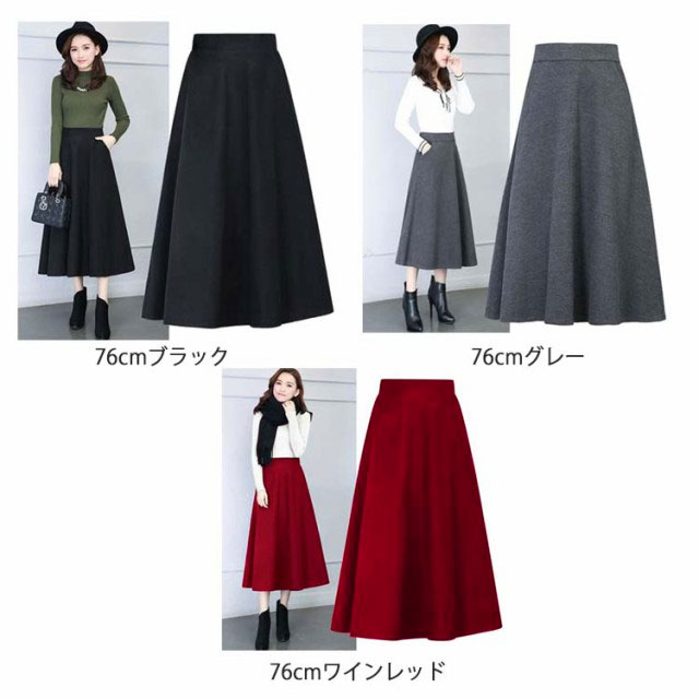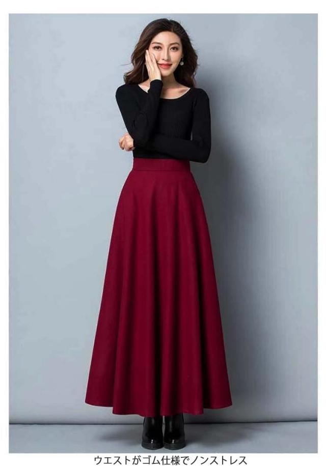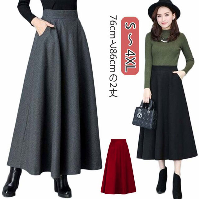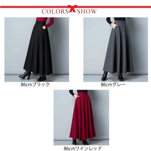 スカート 秋冬 ハイウエスト フレアスカート ロング 冬 黒 スカート ウエスト 伸ばす 大きいサイズ マキシスカート ウール調 ウールタッチ スカート レディース ロングスカート Aライン フェイクウール ポケット付き 無地 着痩せ 体型カバー きれいめ 大人 通勤
