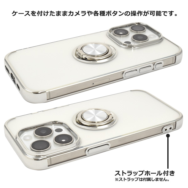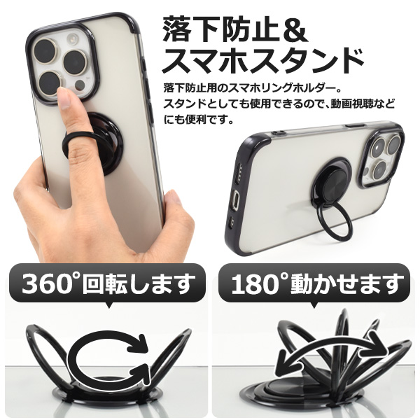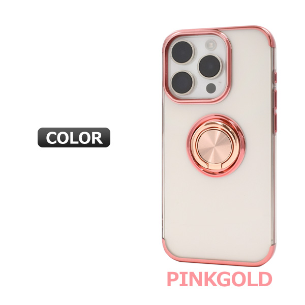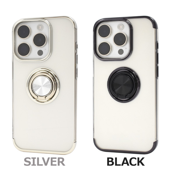 スマホケース iPhone15 Pro スマホリング付 メタリックバンパー ソフトクリアケース アイフォン15プロ ソフトケース バンパーケース 背面 保護 カバー 透明 クリア 光沢 無地 シンプル スタンド iphone15Pro スマホカバー 柔らかい iPhone 15プロ 銀 ピンク 黒