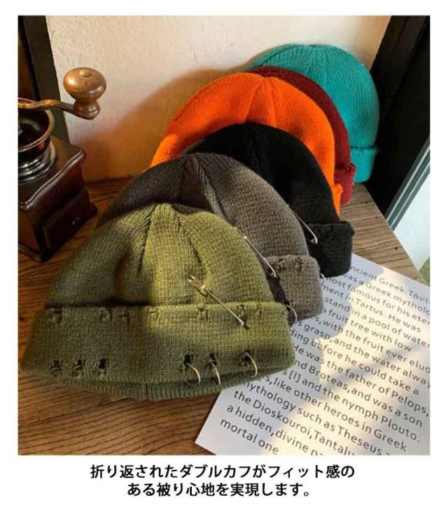 帽子 ダメージ ショート 冬 ショート ニットキャップ 浅め ローワッチ ワッチキャップ 浅い レディース ニット メンズ ビーニー ニット帽 春 秋 イスラム帽 暖かい ストレッチ 折り返し イスラムワッチ ストリート 原宿系 韓国 カジュアル