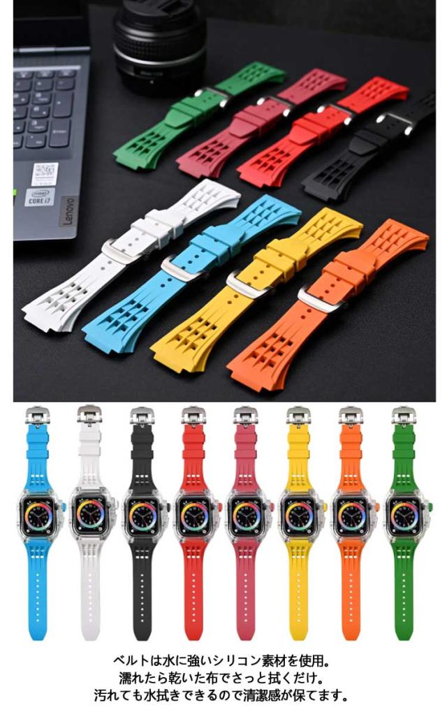 アップルウォッチ バンド ケース カバー 2点セット シリコン ラバーバンド apple watch バンド アップルウォッチバンド 44mm 45mm 49mm アップルウォッチベルト レディース メンズ おしゃれ アップルウオッチ SE 9 8 7 6 5 4 ベルト 防水 ビジネス スポーツ 高級感