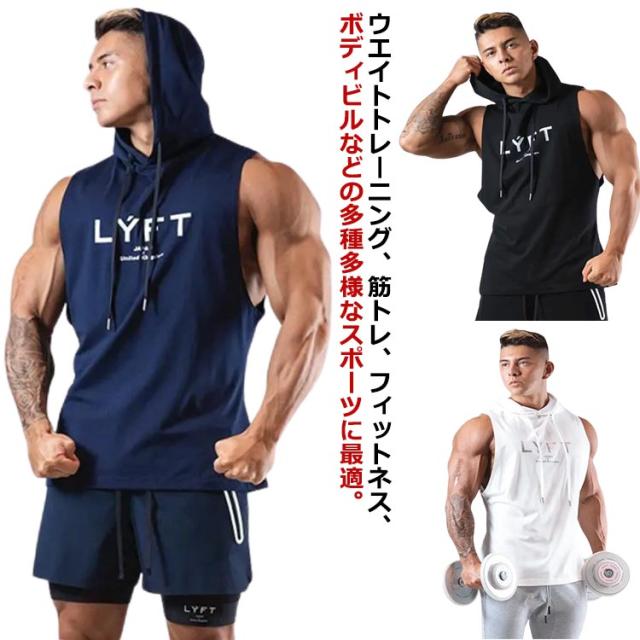 パーカー タンクトップ 無地 パーカー プリント ウエア プルオーバーパーカー ノースリーブ ノースリパーカー 夏用 おしゃれ 袖なしパーカー トップス カットソー スポーツ トレーニング カジュアル フード付き 男性用 父の日 プレゼント ギフト