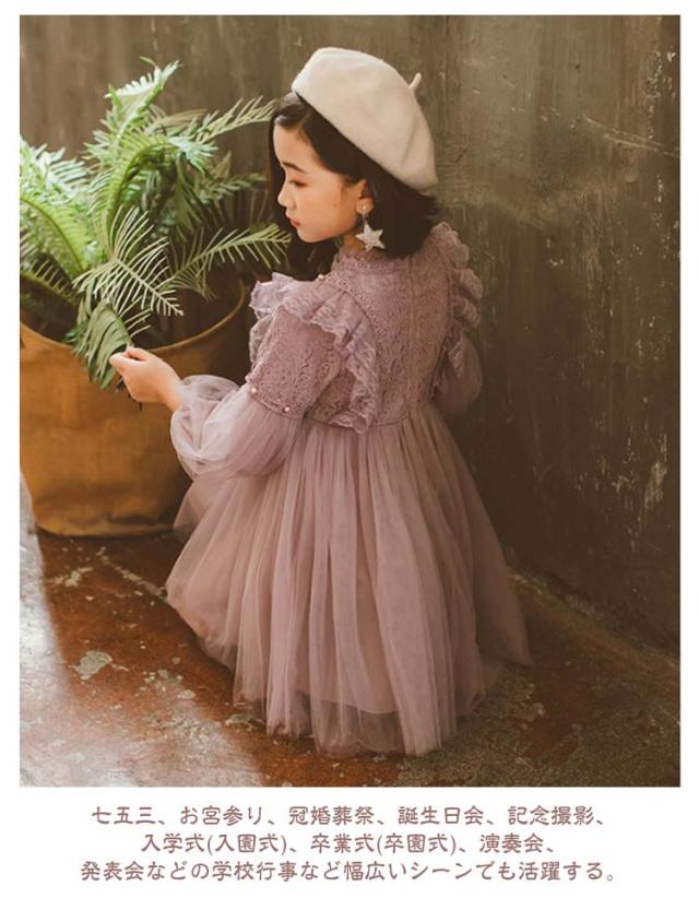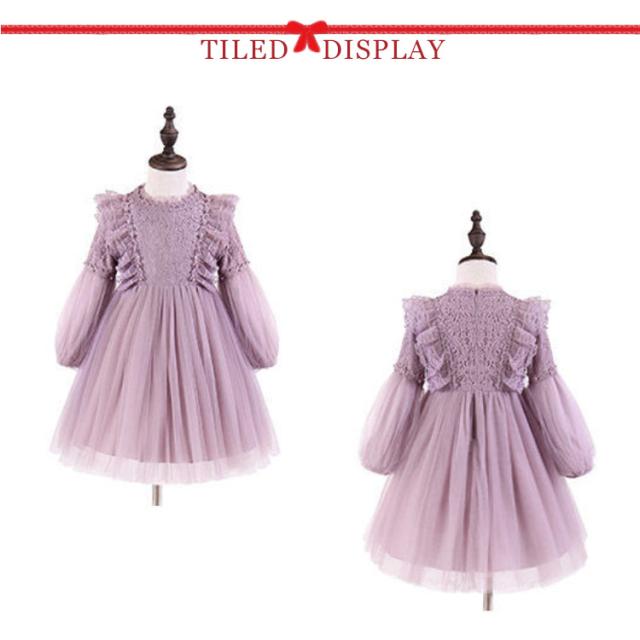 130 キッズドレス 高級感 レース 可愛い ワンピース 子供ドレス フォーマル 長袖 スカート リングガール 女の子 韓国子供服 チュール ピアノ発表会 結婚式 発表会 フラワーガール ウェディング 110 120 子供ドレス 140 150 160cm 七五三 おしゃれ パープル
