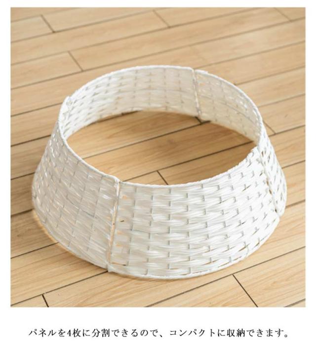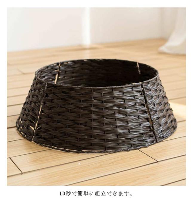 | ツリーの見た目をワンランクアップ! 素朴なバスケット風クリスマスツリースタンドカバー。 十分にツリーを生かすシンプルなデザイン、円盤台のシルエットがツリーとのバランスに安定感があります。 本物のかごに入っているかのようなリアリティがあるつくりになっています。 10秒で簡単に組立できます。 パネルを4枚に分割できるので、コンパクトに収納できます。 | |