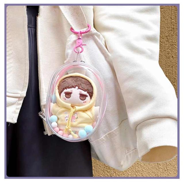 ミニポーチ ぬいぐるみ用 ケース バッグ ミニバッグ ぬいポーチ ぬいポーチ 人形入れ 痛バ 痛バッグ クリアバッグ キーホルダー付 鞄 透明 推し活 ミニ ヌイポーチ ギフト ポンポンボール付 防塵 レディース ぬいぐるみ ケース 汚れ防止
