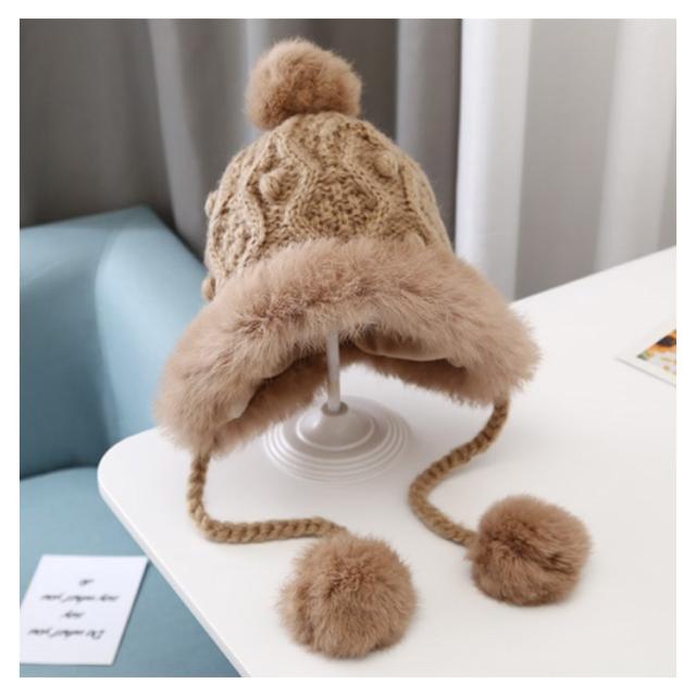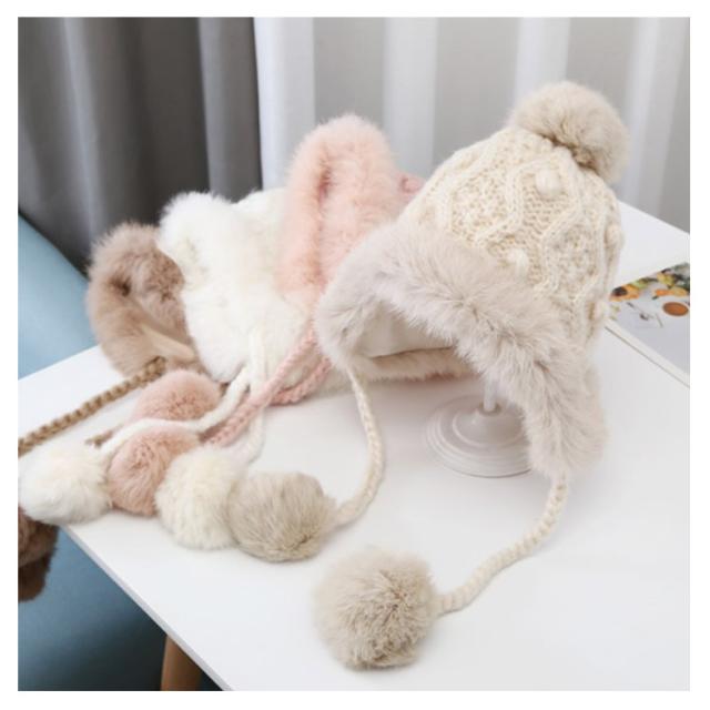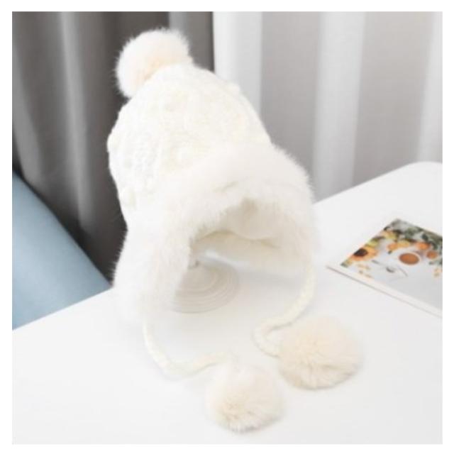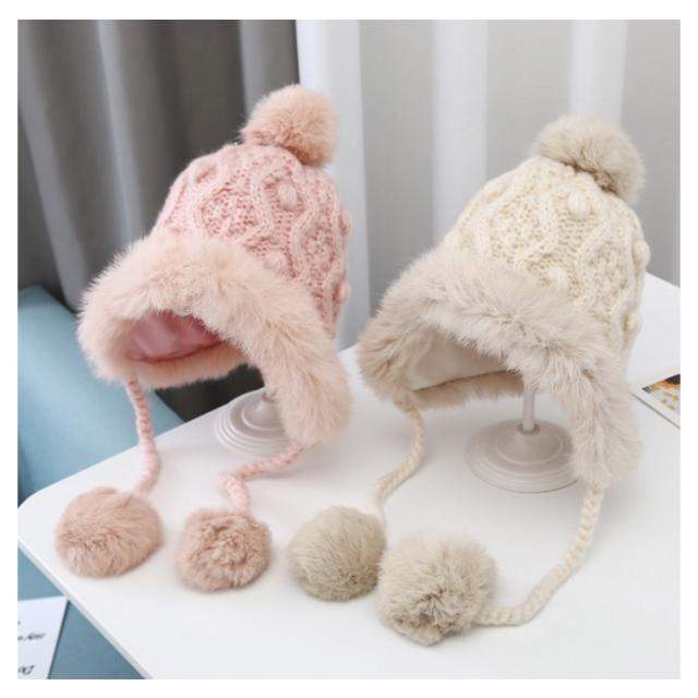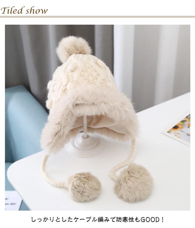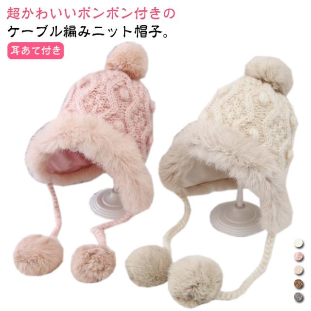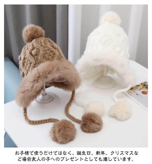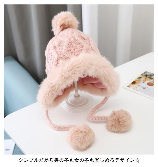 防寒 送料無料 耳当て ベビー フェイクファー ケーブル編み こども 送料無料 ポンポン付き モコモコ あったか 帽子 防寒帽子 ニット帽 男の子 女の子 ベビー 柔らかい 冬用 ニットキャップ 可愛い 暖かい コットン裏地 かわいい ふわふわ もこもこ