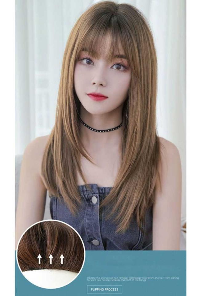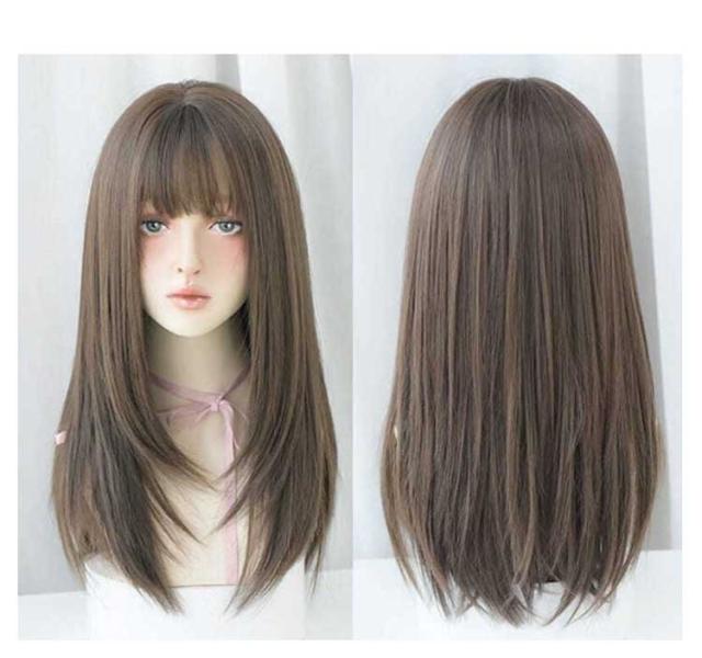 前髪 自然 フルウィッグ ウィッグ ストレート グラデーション レディース セミロング ウィッグ かつら 女性 医療用ウィッグ 黒髪 コスプレ つけ毛 普段使い きれいめ 大人かわいい