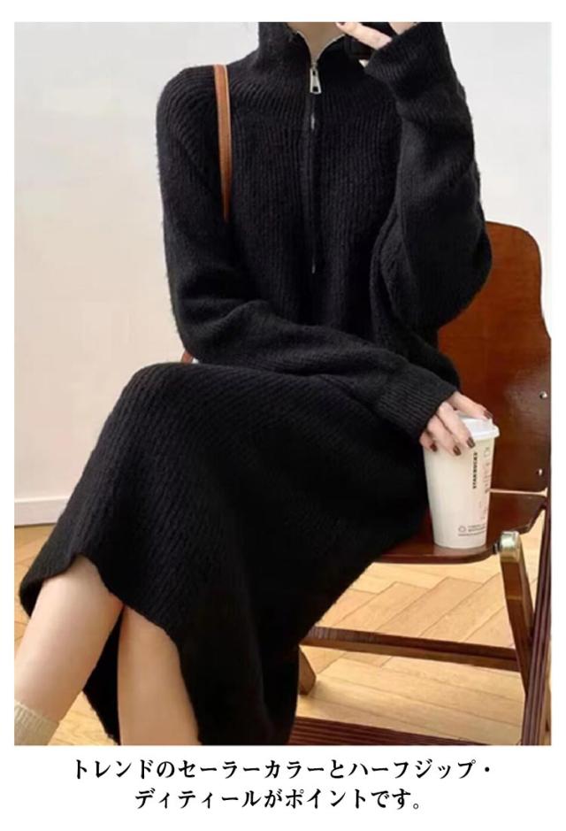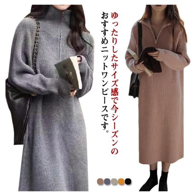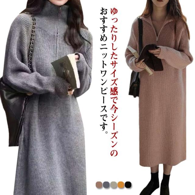ニットワンピース 可愛い 楽ちん ニットワンピース おすすめ Iライン 体系カバー 大人カジュアル ロング おしゃれ レディース トレンド 人気 プチプラ