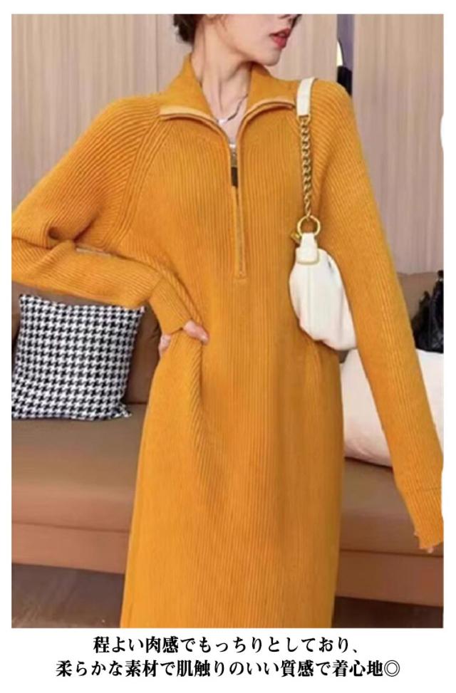 | ゆったりしたサイズ感で今シーズンのおすすめニットワンピースです。 程よい肉感でもっちりとしており、柔らかな素材で肌触りのいい質感で着心地◎ Iラインシルエットなので、気になるお腹周りやお尻も目立たずしっかりカバーしてくれます。 トレンドのセーラーカラーとハーフジップ・ディティールがポイントです。 | |