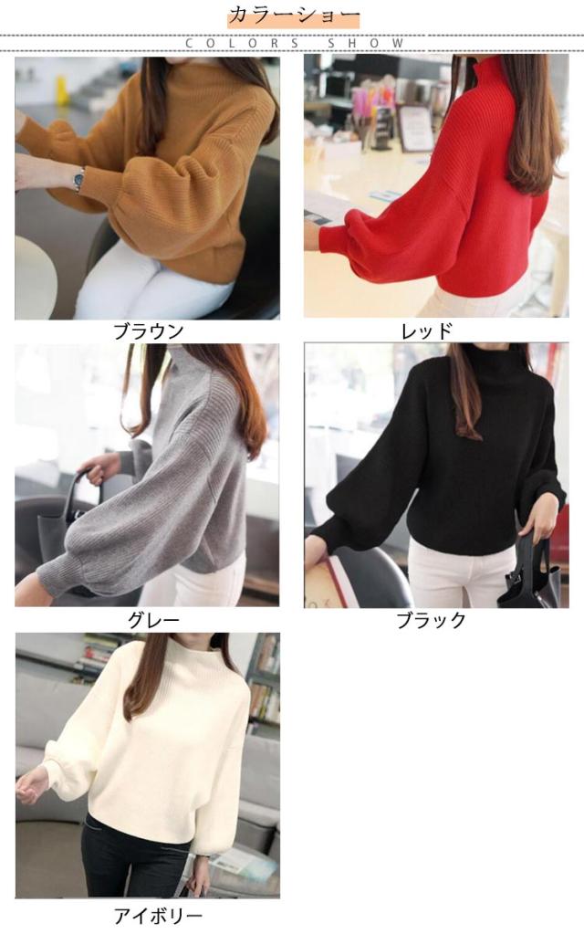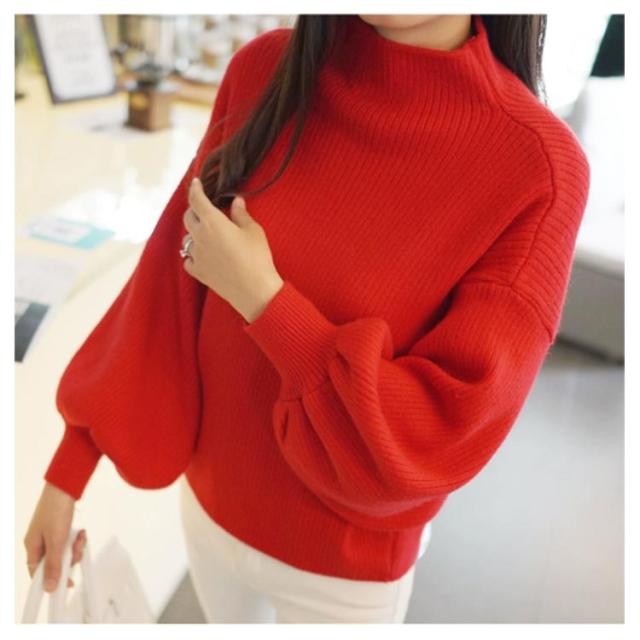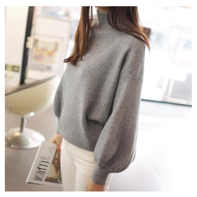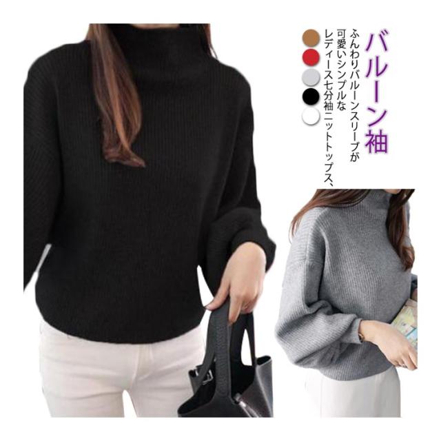 韓国ファッション バルーン袖 バルーンスリーブ トップス ハイネック 40代 シンプル レディース ニットセーター 大きいサイズ 無地ニット バルーン袖 リブ 長袖 ゆったり きれいめ 20代 30代