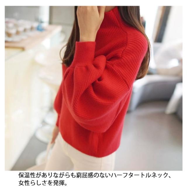 | ふんわりバルーンスリーブが可愛いシンプルなレディース七分袖ニットトップス、 保温性がありながらも窮屈感のないハーフタートルネック、女性らしさを発揮。 きれいめにもカジュアルにも幅広く使える大人女子にお勧めな1枚。 | |