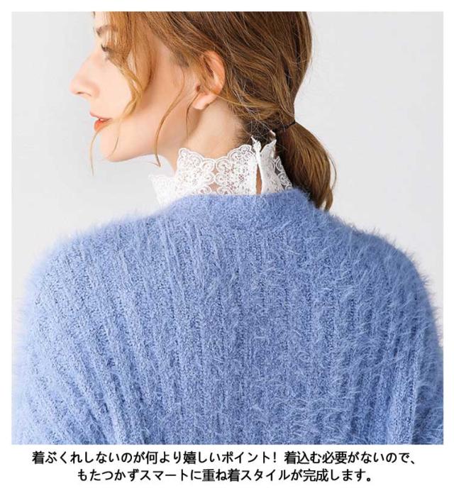 | 総レースデザイン付け襟 着こなしの幅が広がるプラスワンアイテム。いつものトップスに重ねるだけで、レイヤード風のコーディネートが即完成! 女らしさを高める総レースデザイン。ほんのり素肌が透けるシースルー仕立てで、上品フェミニンな印象に。 後ろにボタンが付いているので着脱も簡単です。 フィット感を生む伸縮サイドストラップ。便利なアジャスター付きでご自身の身幅に調節が可能です。 着ぶくれしないのが何より嬉しいポイント!着込む必要がないので、もたつかずスマートに重ね着スタイルが完成します。 | |